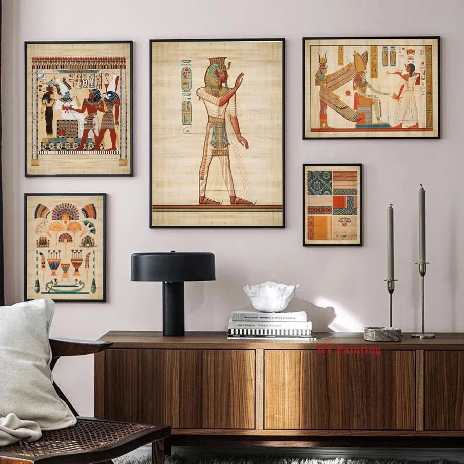Ancient Egyptian Totem Belief Pyramid Pharaoh Tomb Portrait Poster Canvas Painting Wall Art Pictures Vintage Home Decor Gift