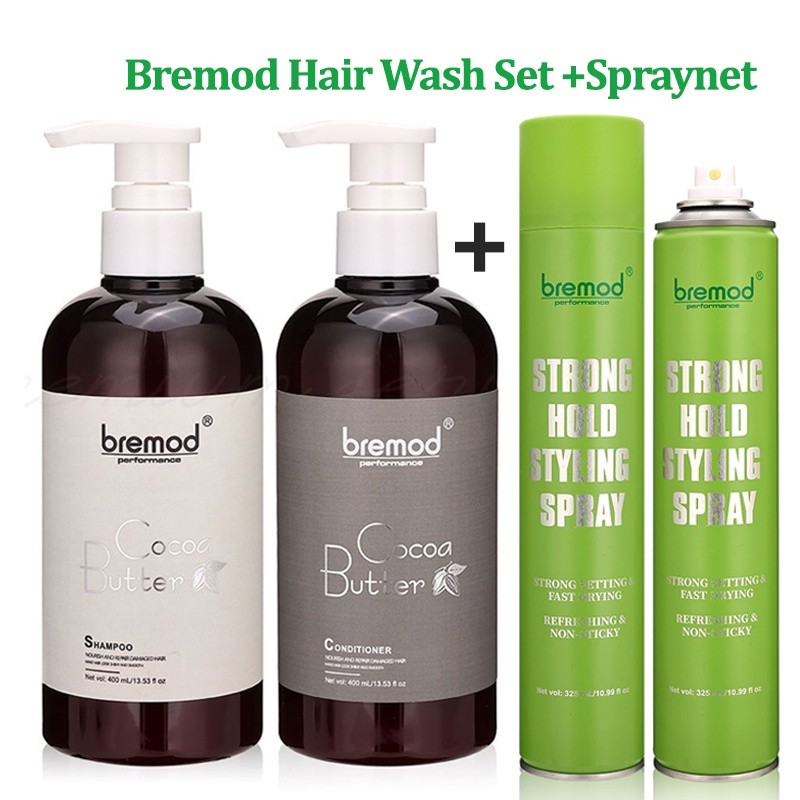 Bremod Conditioner Shampoo 800ml+Bremod Hair Spraynet 325ml Spray Net Strong Hold Styling+Hair Wash