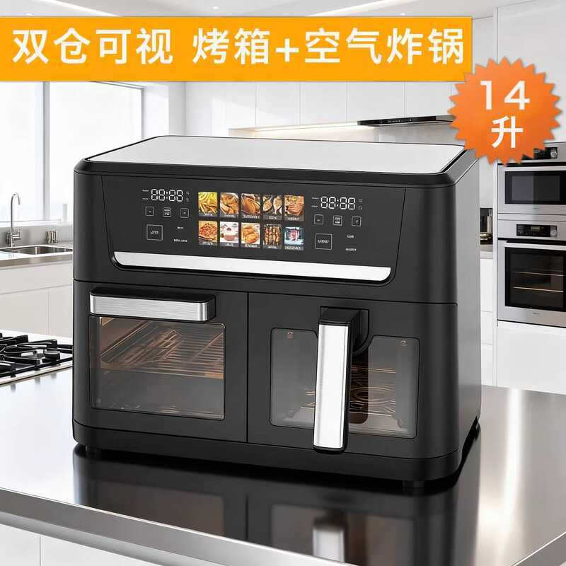 Dual Chamber 14L Air Fryer Home Commercial Use, Touch Control, Smart Oil-Free Oven for Frying