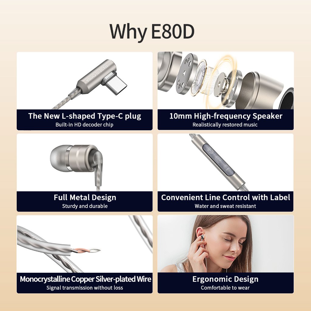 SoundMAGIC E80D Type C Wired Earbuds Digital USB Type C in Ear Headphones with Microphone HiFi Stereo Audiophile Earphones Noise Isolating in Ear Headphones Comfortable Fit Super