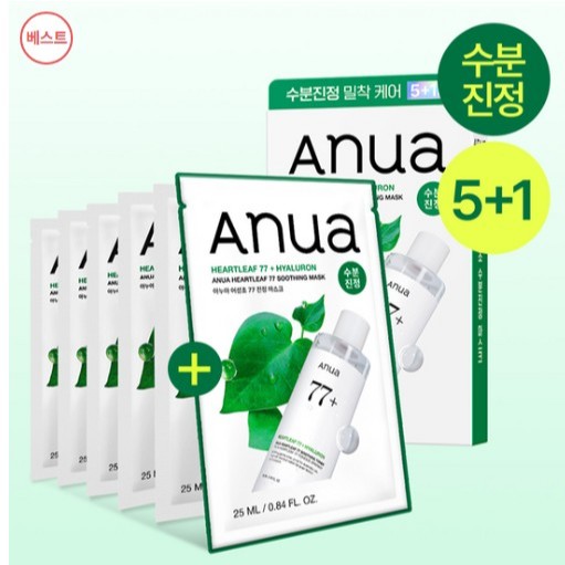 [Anua] Hydrating & Soothing Mask Collection|Heartleaf 77 / PDRN Serum / Peach 70 Glow / Catechin Cooling – 5+1 Sheets