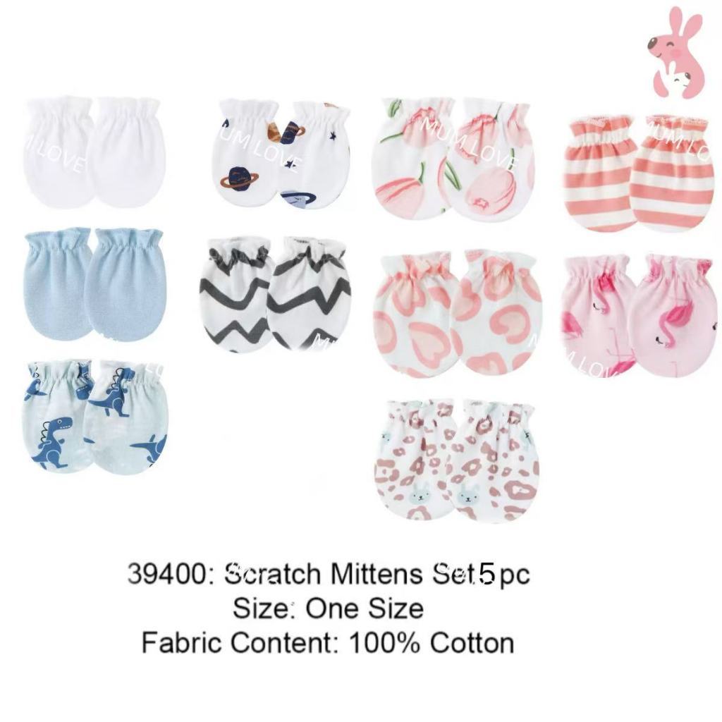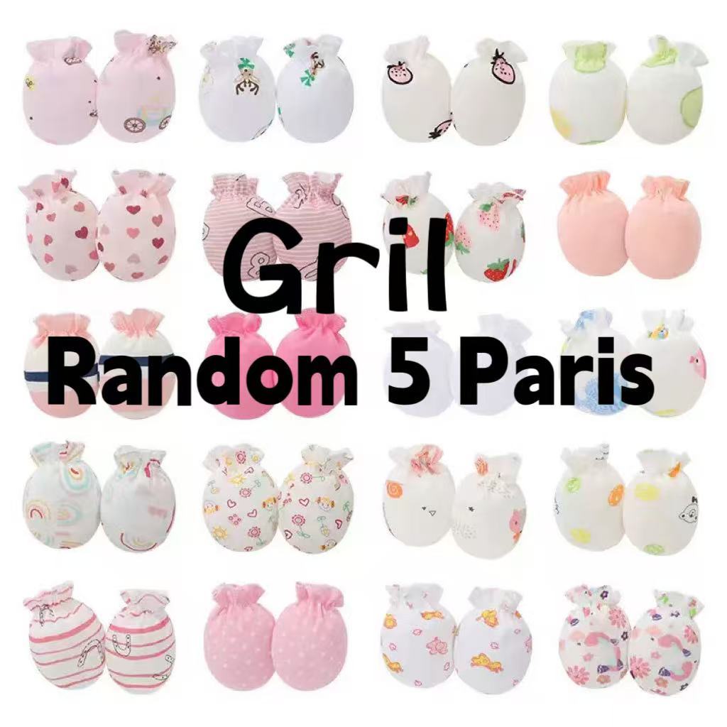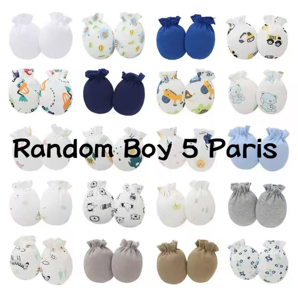 Mum Love 5 Paris Anti-Scratch Face Baby Gloves Mittens Soft Cotton Randomly Given with Cute Patterns