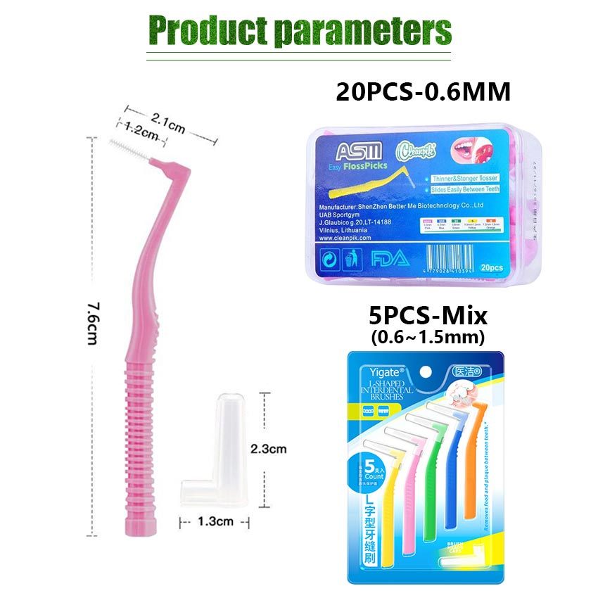GEEBON 20pcs Interdental Brush L Shape Toothpick Oral Hygiene Care Teeth Whitening Tooth Pick