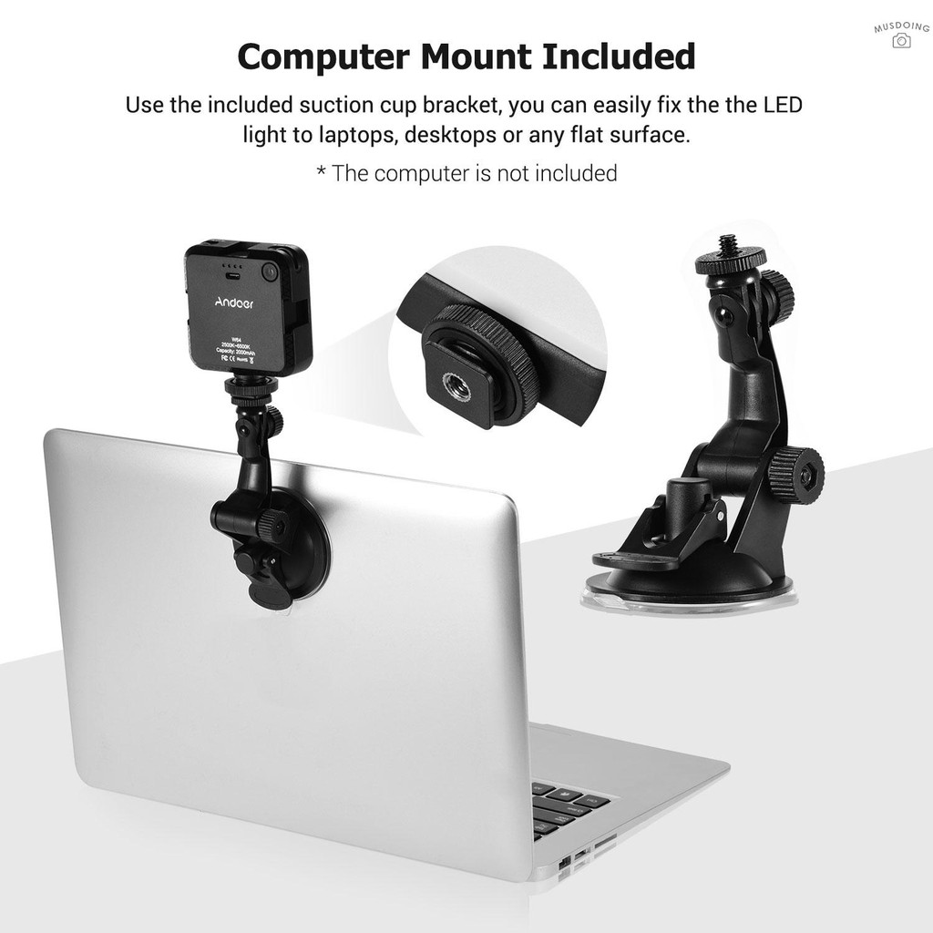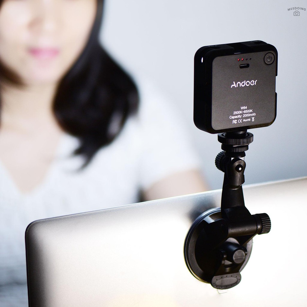 Andoer W64 Video Conference Lighting Kit with 6W Mini Bi-color Vlog LED Light 2500K-6500K Dimmable Rechargeable 3 Cold Shoes + Suction Cup Mount for Laptop Live Streaming Online Me