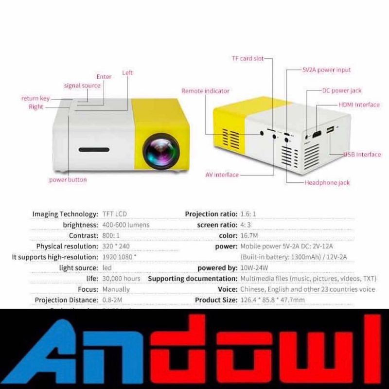 Andowl Pocket HD 1080P LED HOME MINI PROJECTOR YG300