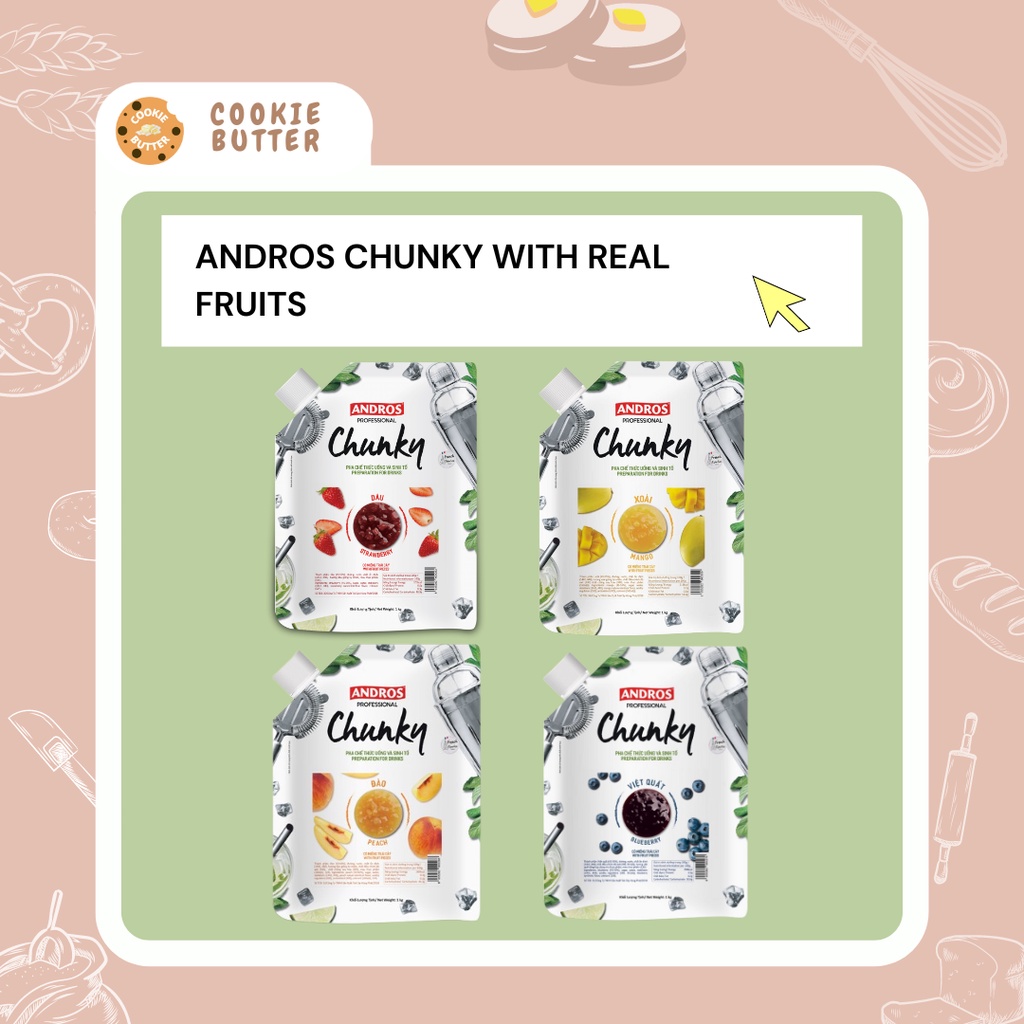 Andros Fruit Filling/Andros Real Fruit Filling/Andros Chunky/Andros Professional (Strawberry/Mango/Blueberry/Peach)