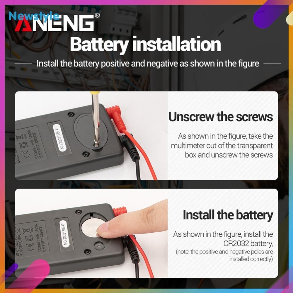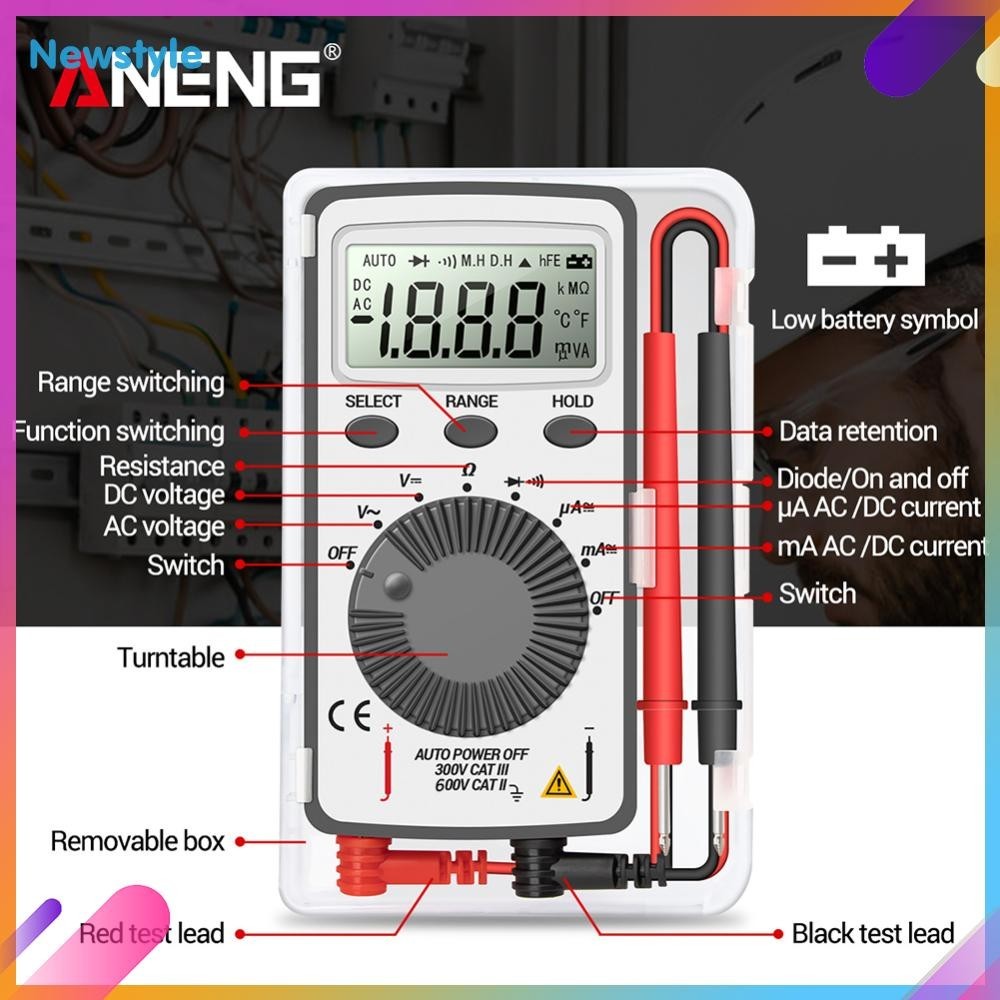 Aneng AN101 LCD Mini Digital Multimeter Backlight 1999 T-Rms AC/DC Ncv Capacitance Automatic Portable Voltmeter Ammeter Ohm Tester