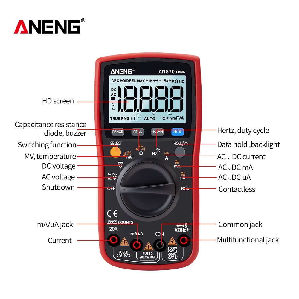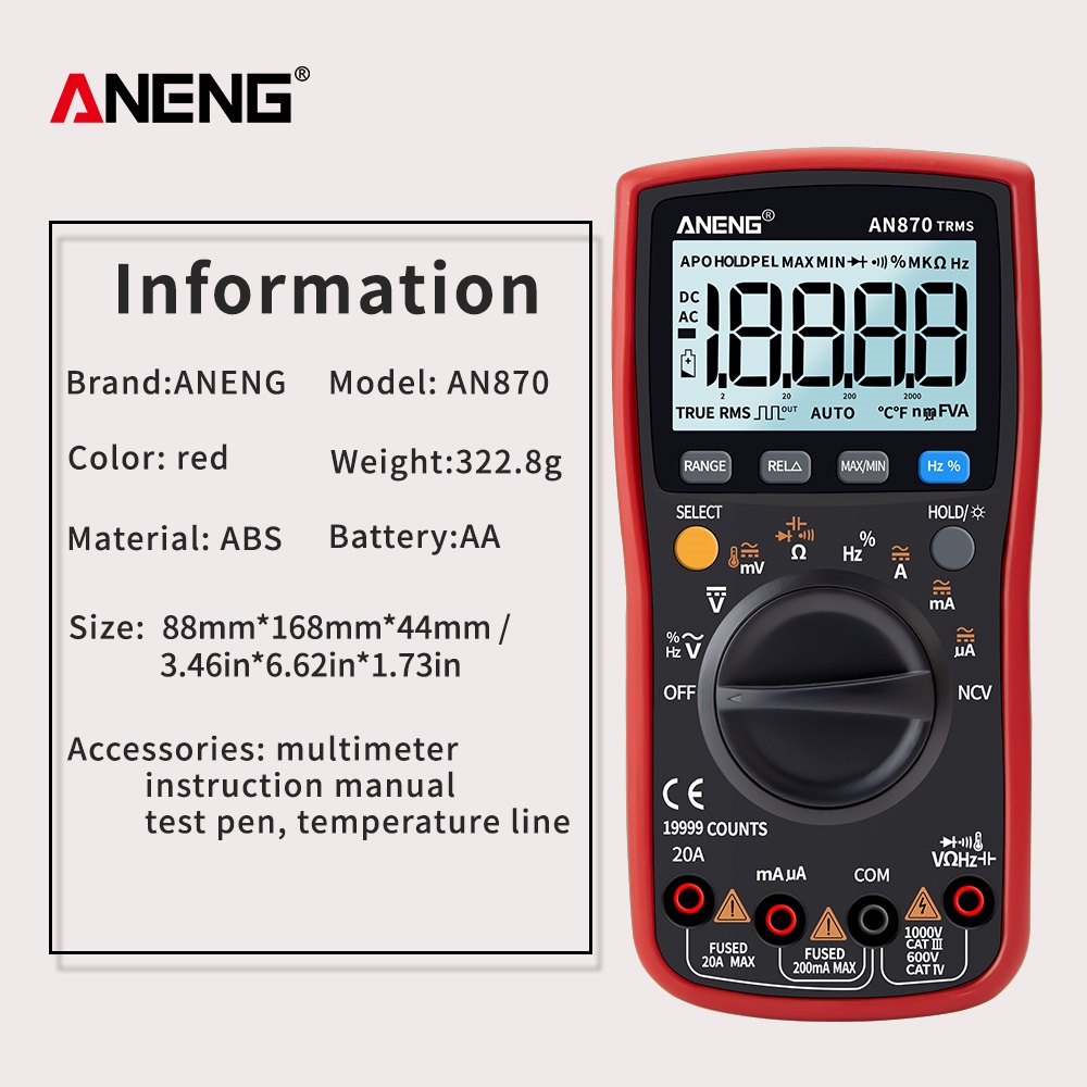 Aneng An870 Digital Multimeter 19999 Counts True Rms Transistor Tester Volti Metro Profesional Capacitance Meter
