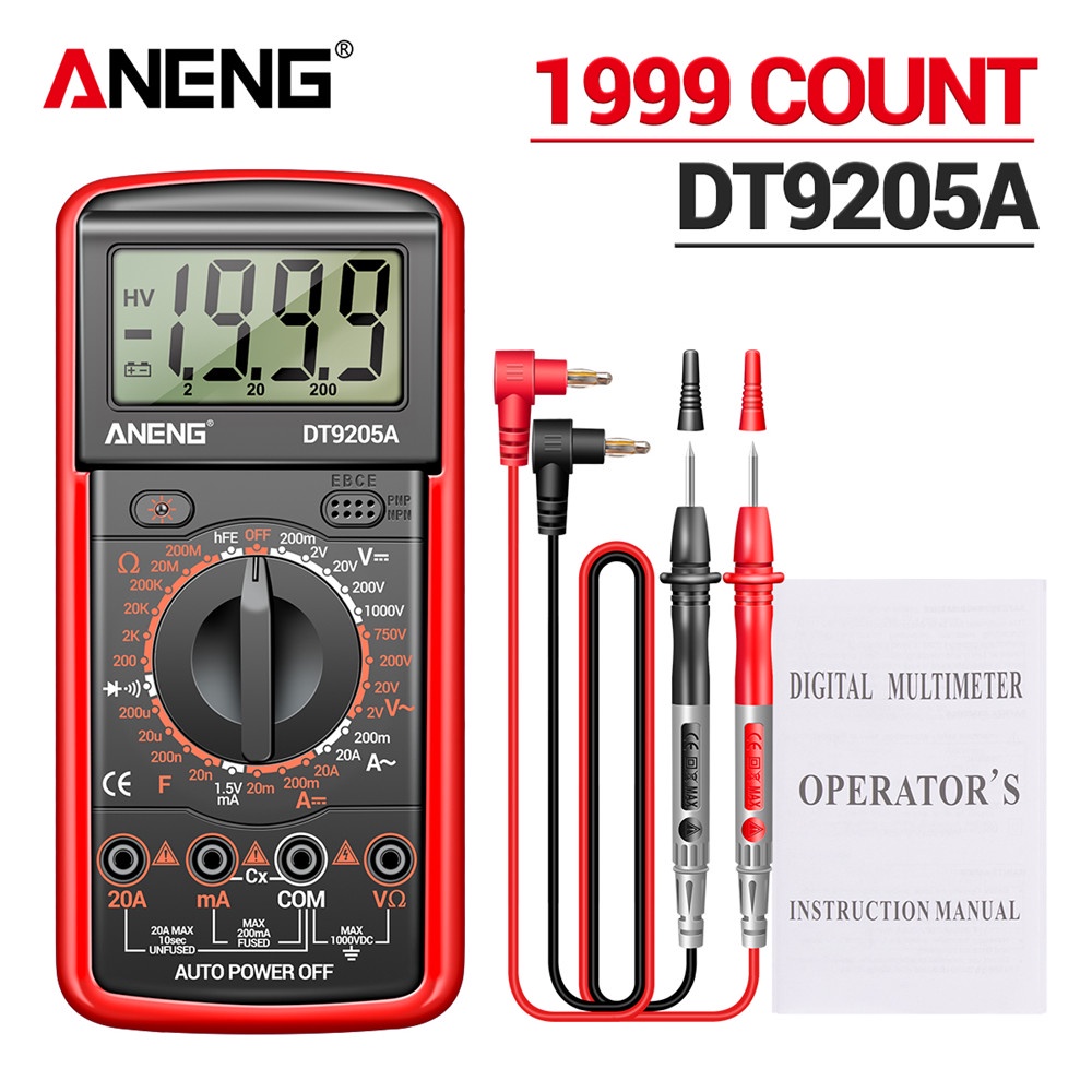 Aneng Dt9205A-12 1999 Counts Digital Multimeter Ac/Dc Current Voltage Tester Electrical Test Meter Profesional Analog Others