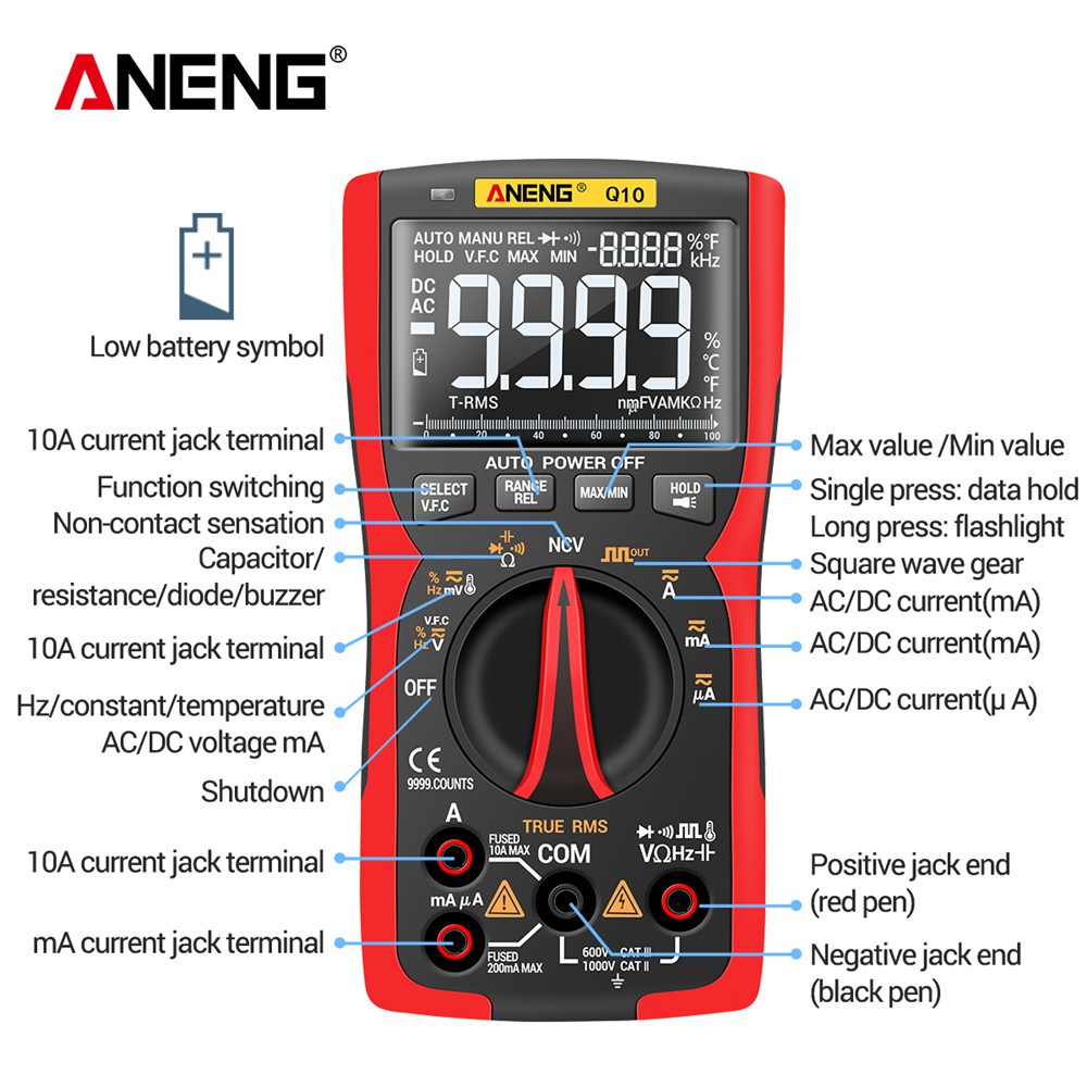 Aneng Q10 Digital Multimeter 9999 Profesional Tester True Rms Analog DIY Transistor Capacitor Ncv Testers Lcr Meter