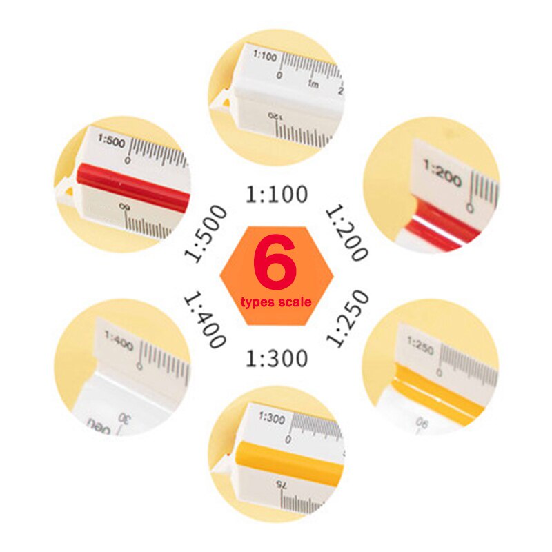 Triangular Scale Ruler 1:20-1:500 Alloy/Metal/Plastic Straight Ruler 30cm Architect/Engineer Accurate Drafting Measure Tool