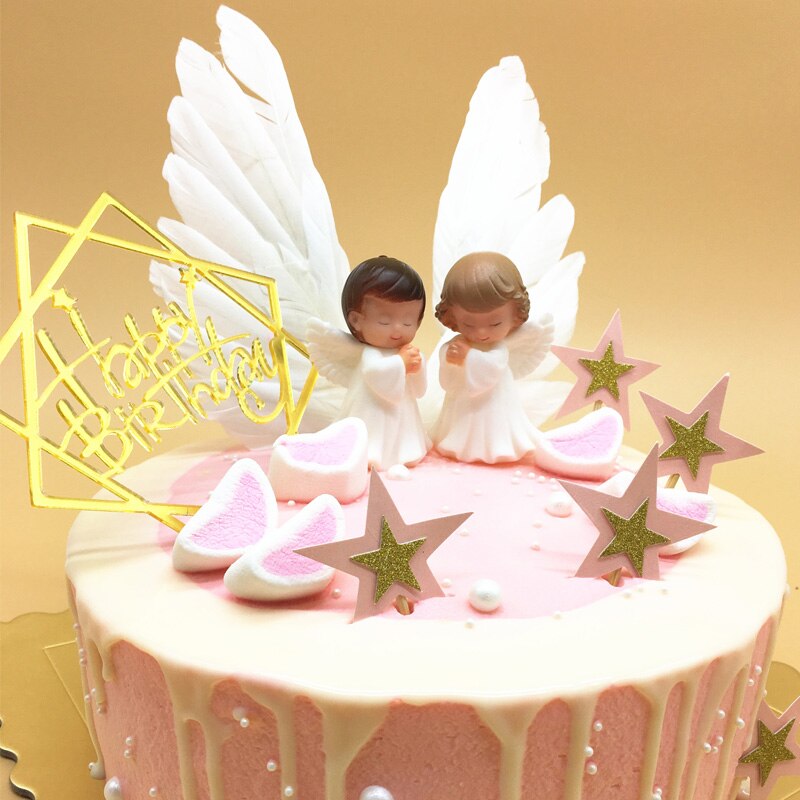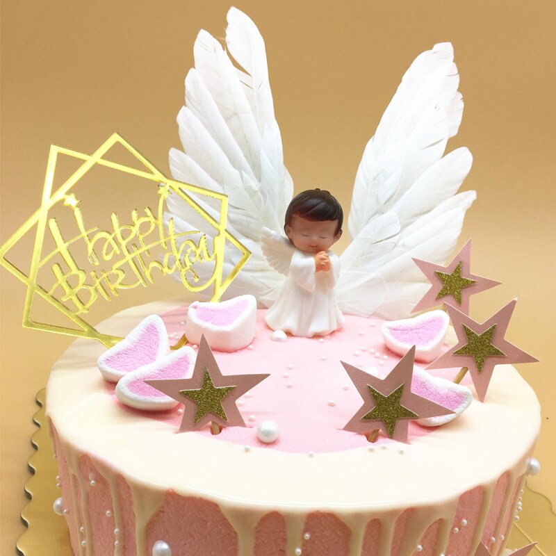 Angel boy girl Cake Decoration Feather cake topper picks Wedding Happy Birthday cake Topper baby shower boy babyshower