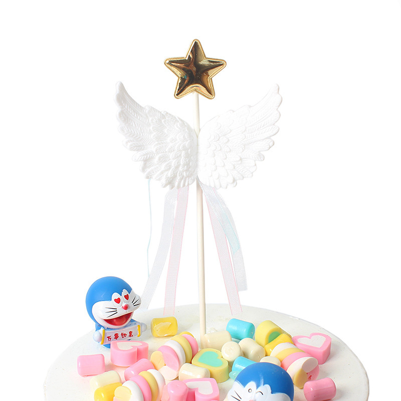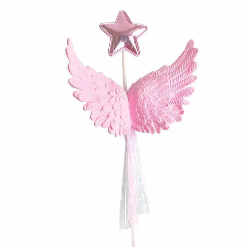Angel wings Cake Topper, Feather Wing with star Cake Topper for Birthday / Wedding / Anniversary Cake Decoration