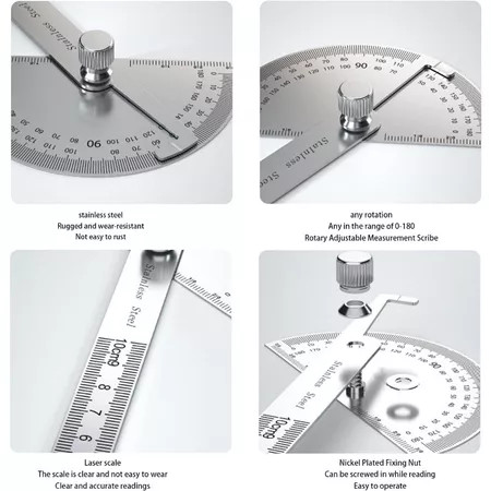 Angle Meter Measure Protractor Ruler Metal Finder 180 Degree Guage Goniometer Stainless Steel Woodworking Wood Measurement Tool