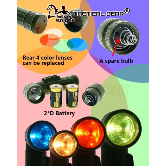 Angle Torch Flashlight With 4 Coloured Lenses Signal Lighting