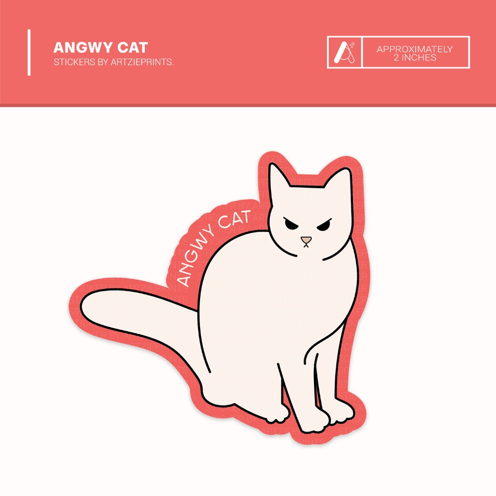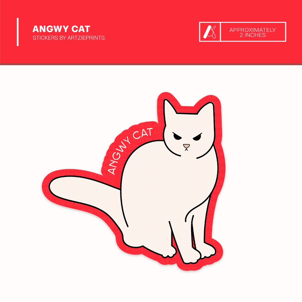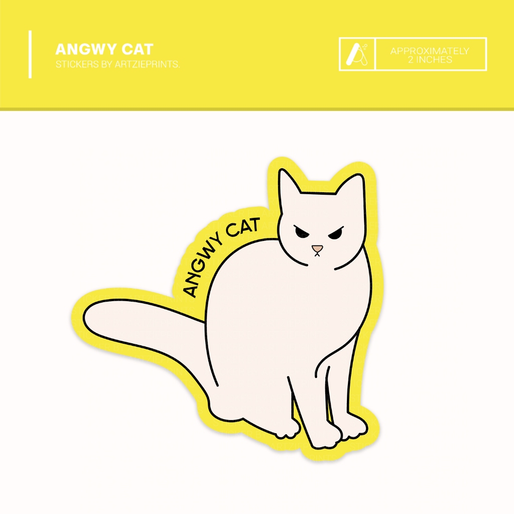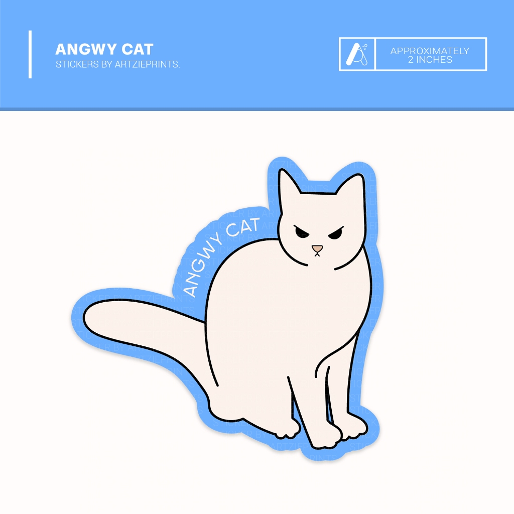 Angwy Cat Sticker | Matte Laminated Waterproof | For : Laptop | Journal | Tumbler | etc