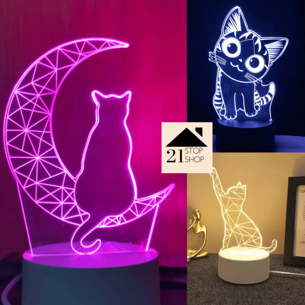 21SHOP Animals Light Cat/Cats 3D Acrylic LED Lamp Night Desk Room Lamp Cat Lovers Personal Use