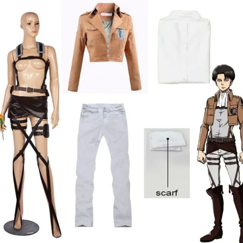 Anime Attack on Titan Levi Ackerman Mikasa Eren Jaeger Soldier Commander Cosplay Suit Belt Investigation Corps Freedom Wings