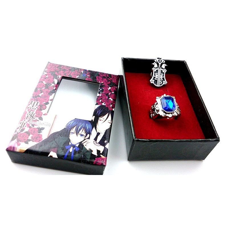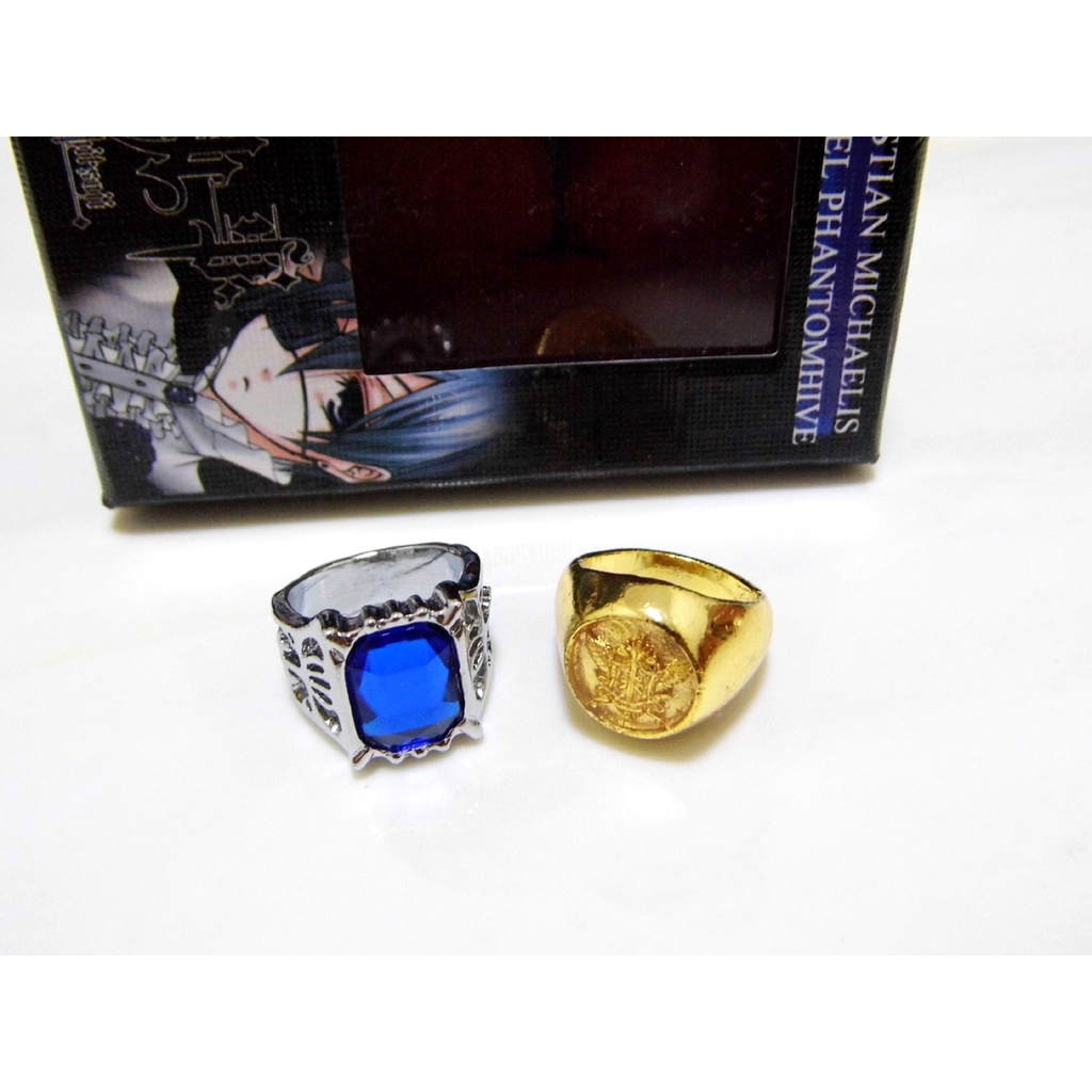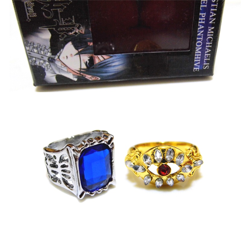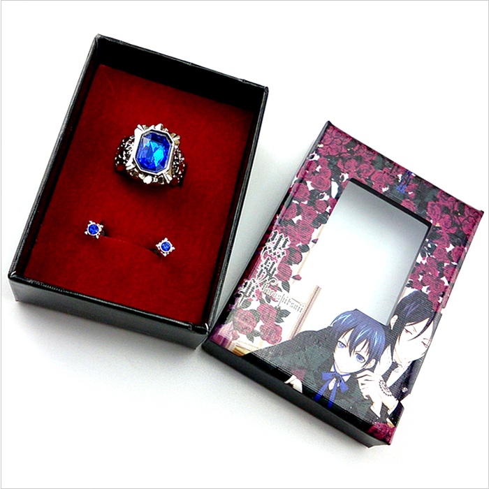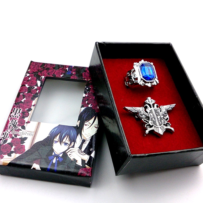 Anime Black Butler Metal Ring & Badge & Earrings Kit Ciel Phantomhive Cosplay Accessories Sebastian Michaelis Collectibles Novelties