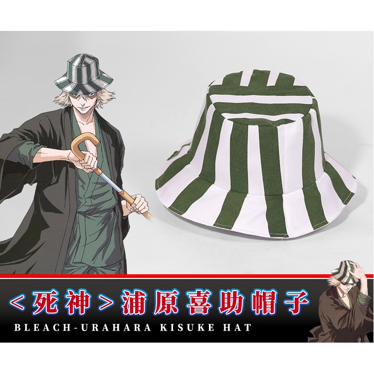 Anime Bleach Urahara Kisuke Cosplay Hat Cap Bucket Hat Green White Striped Hat