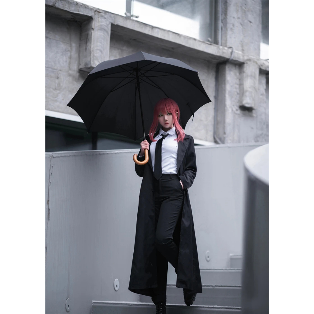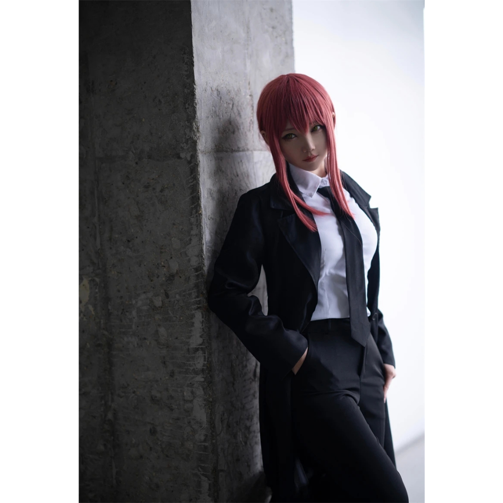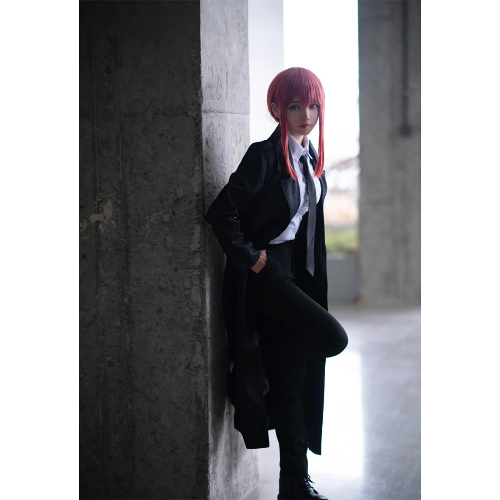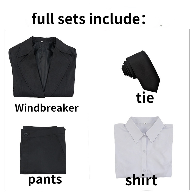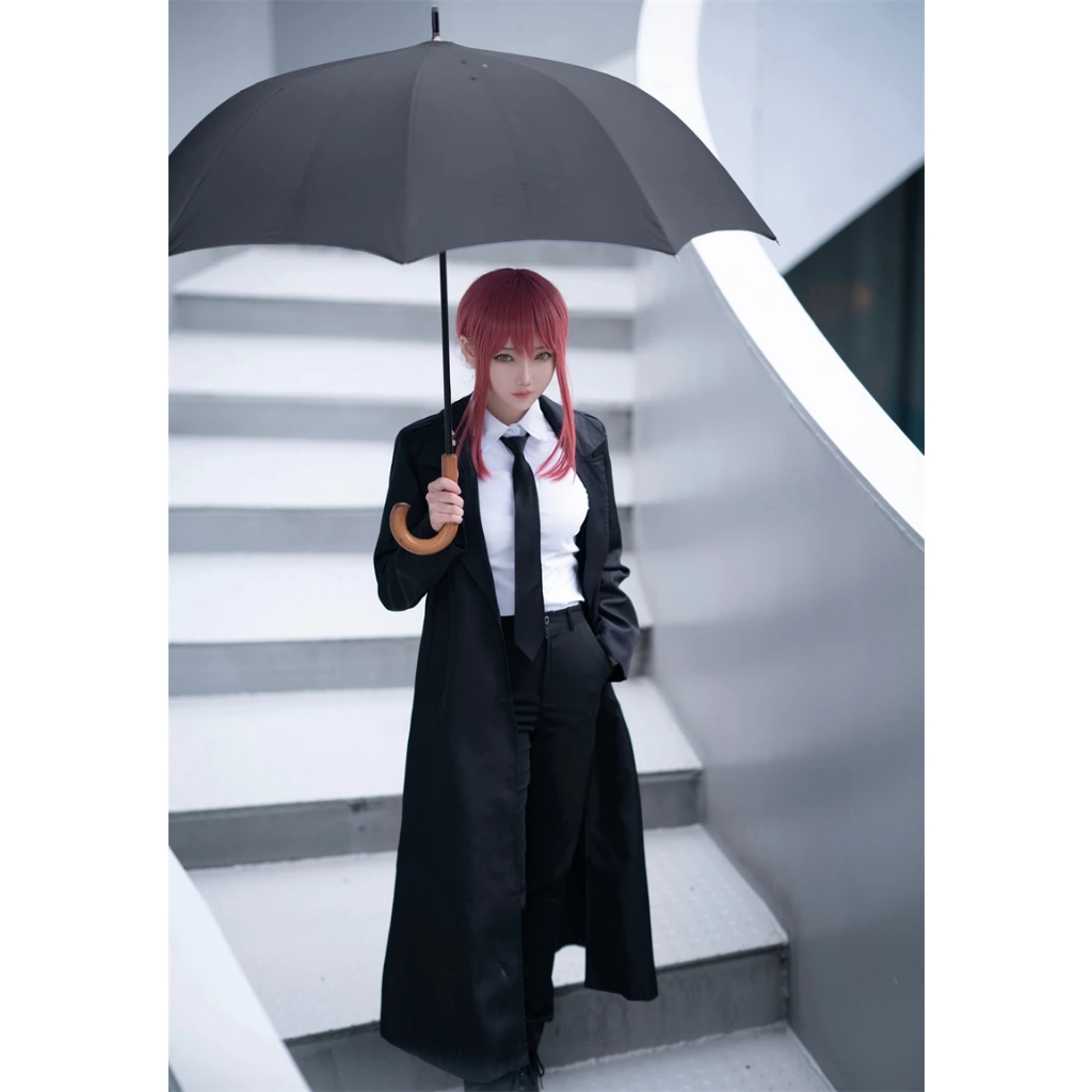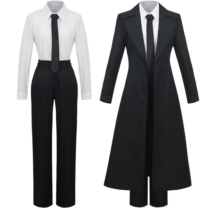 Anime Chainsaw Makima Cosplay Costume Black Trench Shirt Tie Pants Men Women Suit Uniform Wig