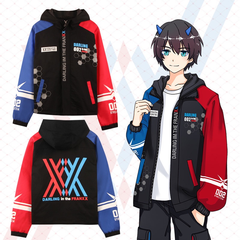Anime DARLING IN THE FRANXX Jacket Hoodie 02 Zero Two National Team Zipped Outerwear Coat Hooded Student Jacket