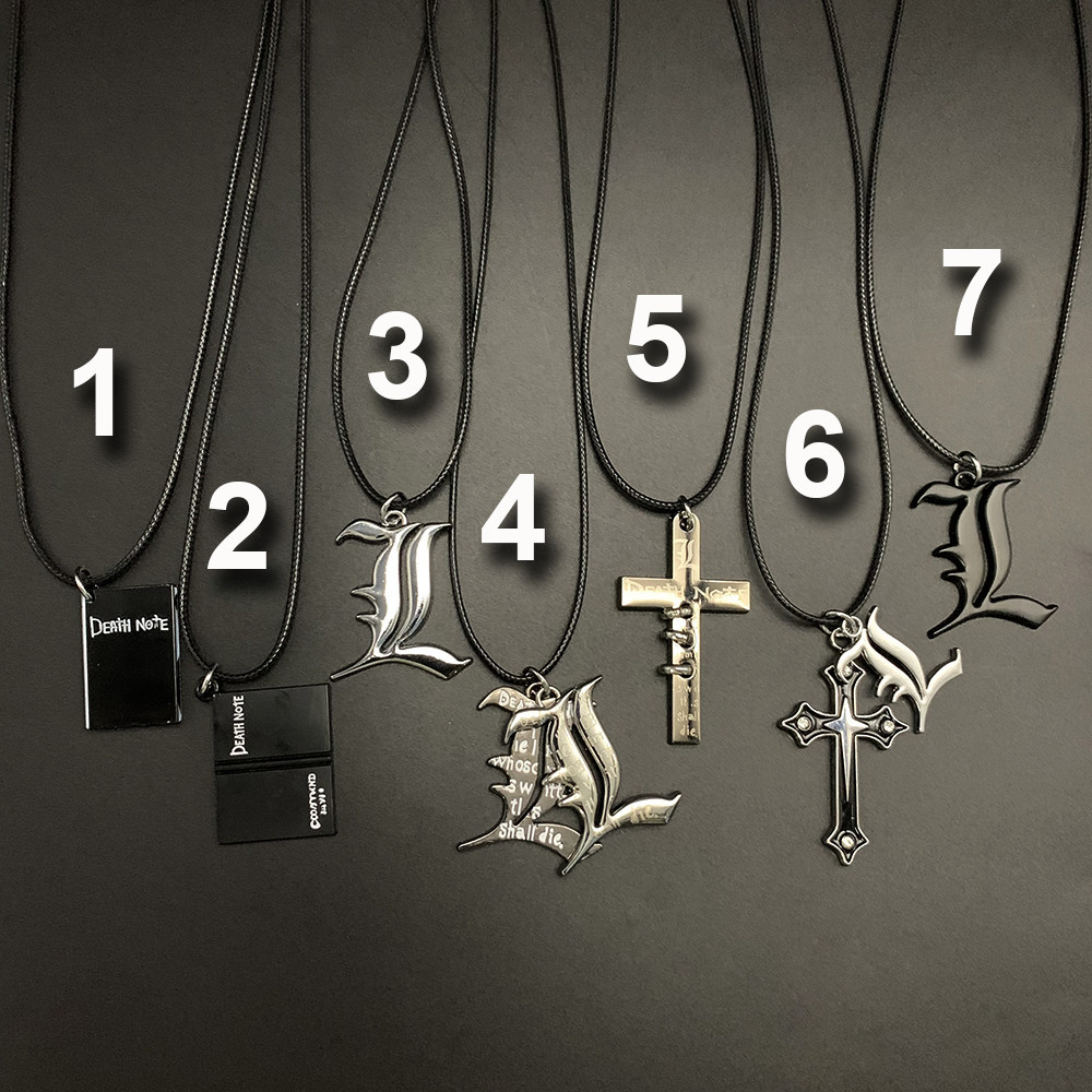 Anime Death Note Necklace L Cross Black Deathnote Book Leather Rope Chain Necklaces Pendant for Men Gift