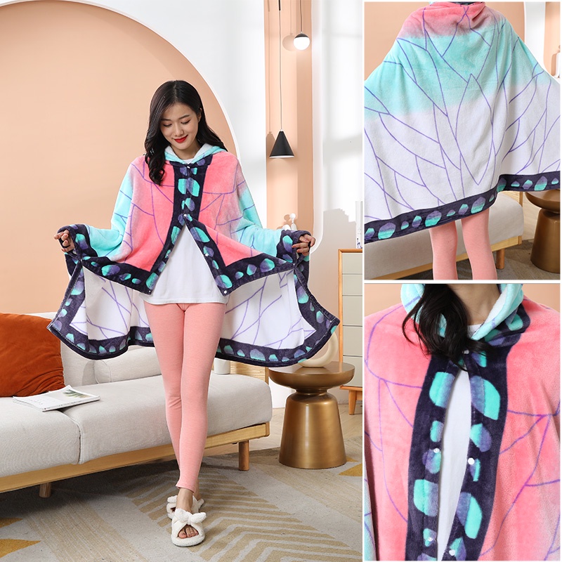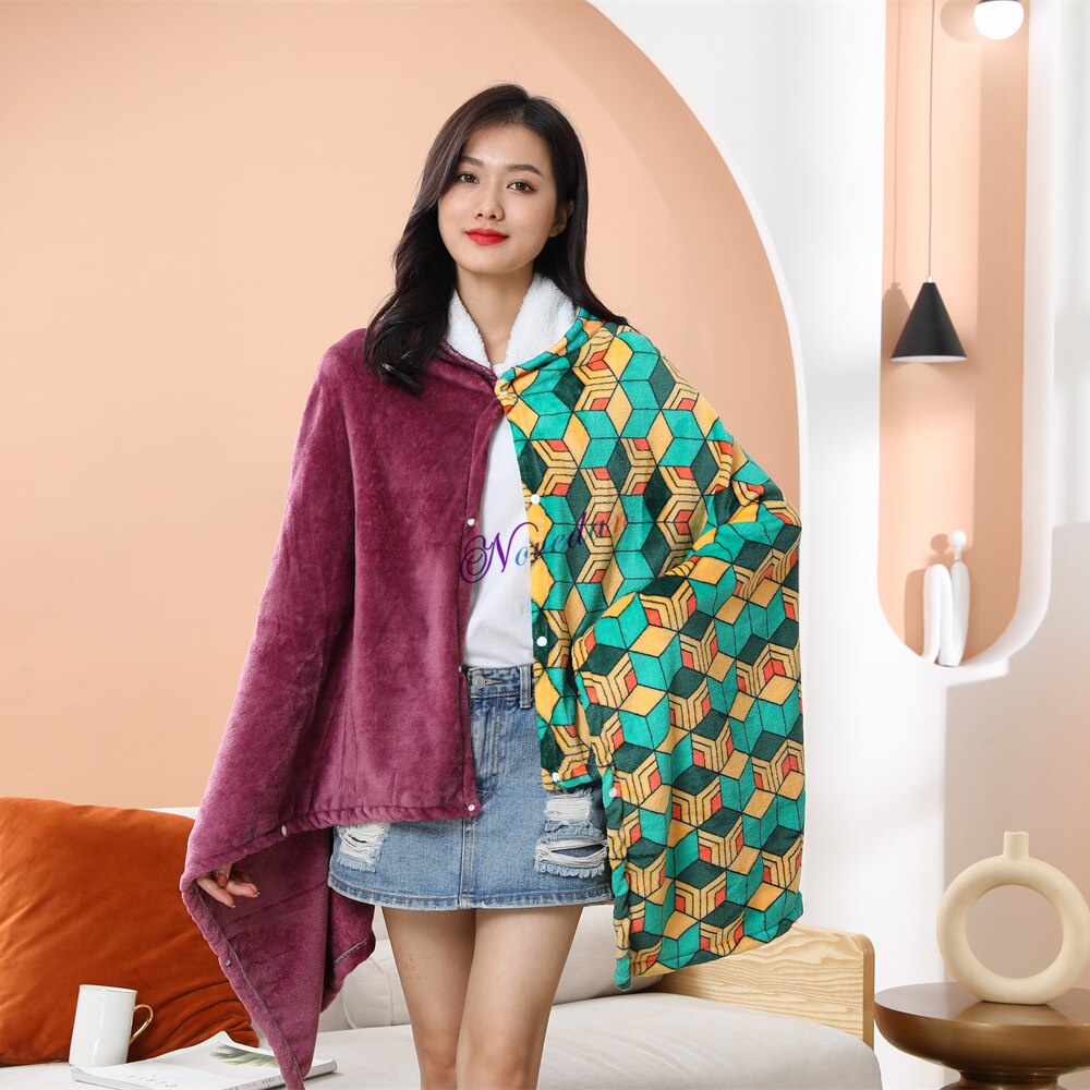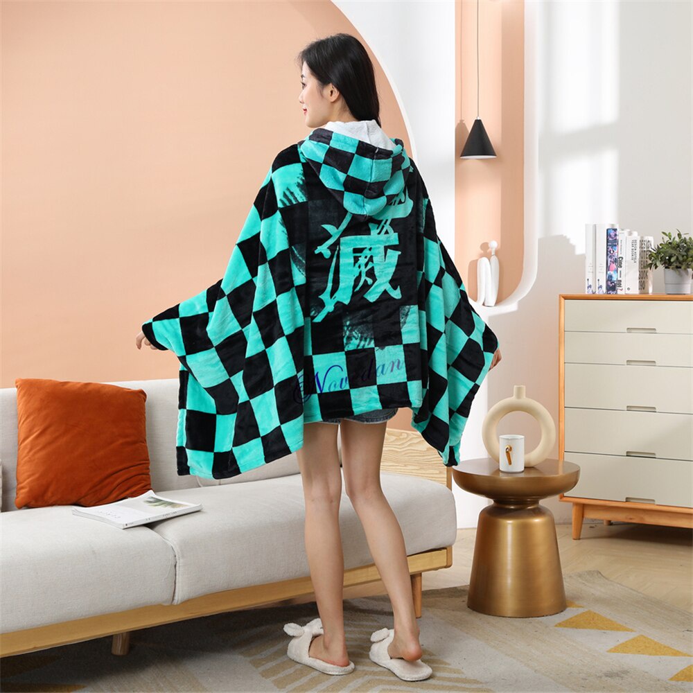 Anime Demon Slayer Blanket Cloak Kimetsu No Yaiba Cloak Cape Winter Warm Fleece Flannel Cosplay Costume Hoodie Christmas Gift
