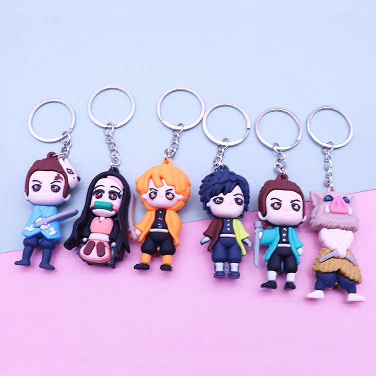 Anime Demon Slayer Figures Keychains Kimetsu no Yaiba Nezuko Tanjirou Agatsuma Zenitsu Inosuke PVC