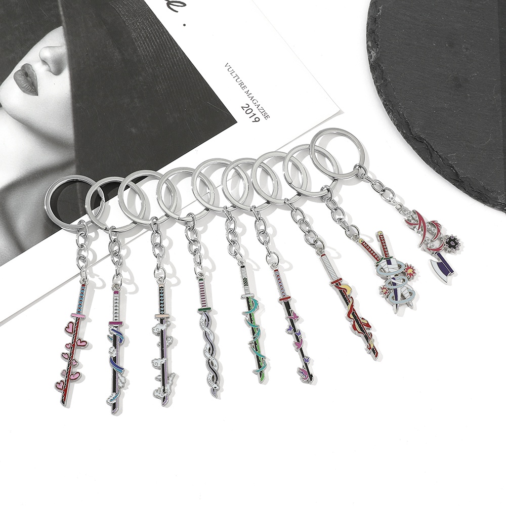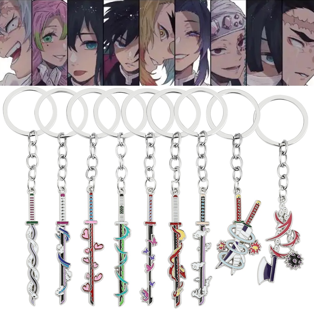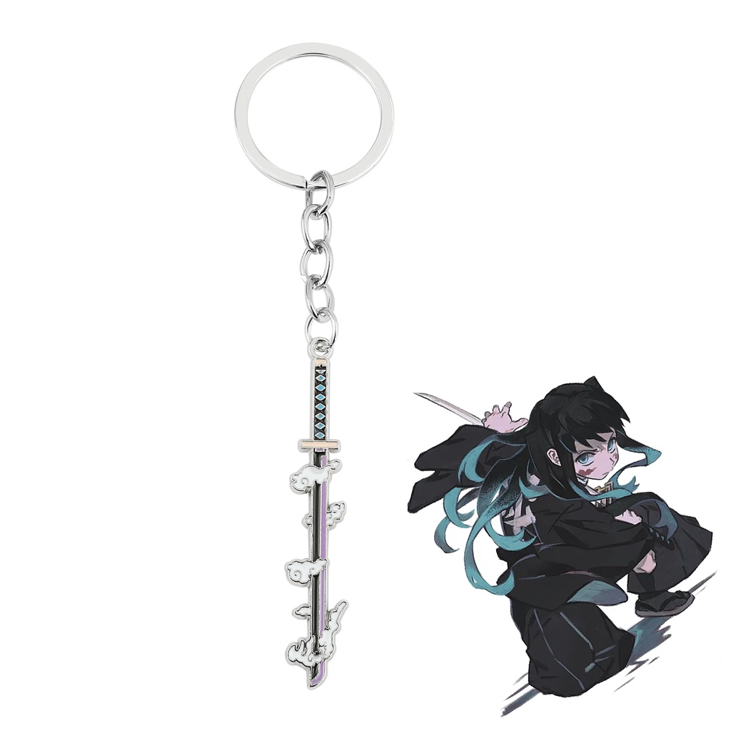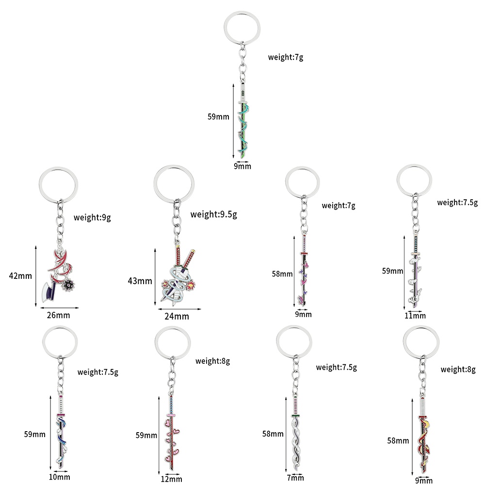 Anime Demon Slayer Keychain Metal Sword Keyring Kid Men Women Cosplay Cartoon Props Pendant Keyring Fans Collections Gift