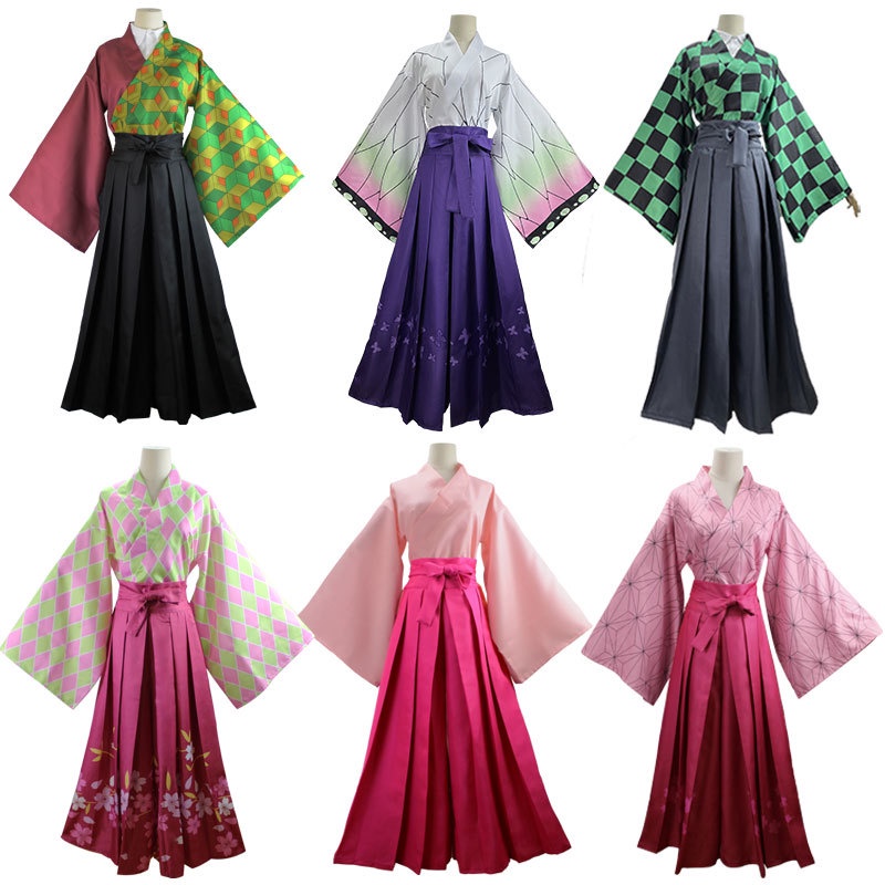 Anime Demon Slayer Kimetsu No Yaiba Kimono Sets Tanjirou Nezuko Shinobu Giyuu Cosplay Full Set Halloween Carnival Party Costume