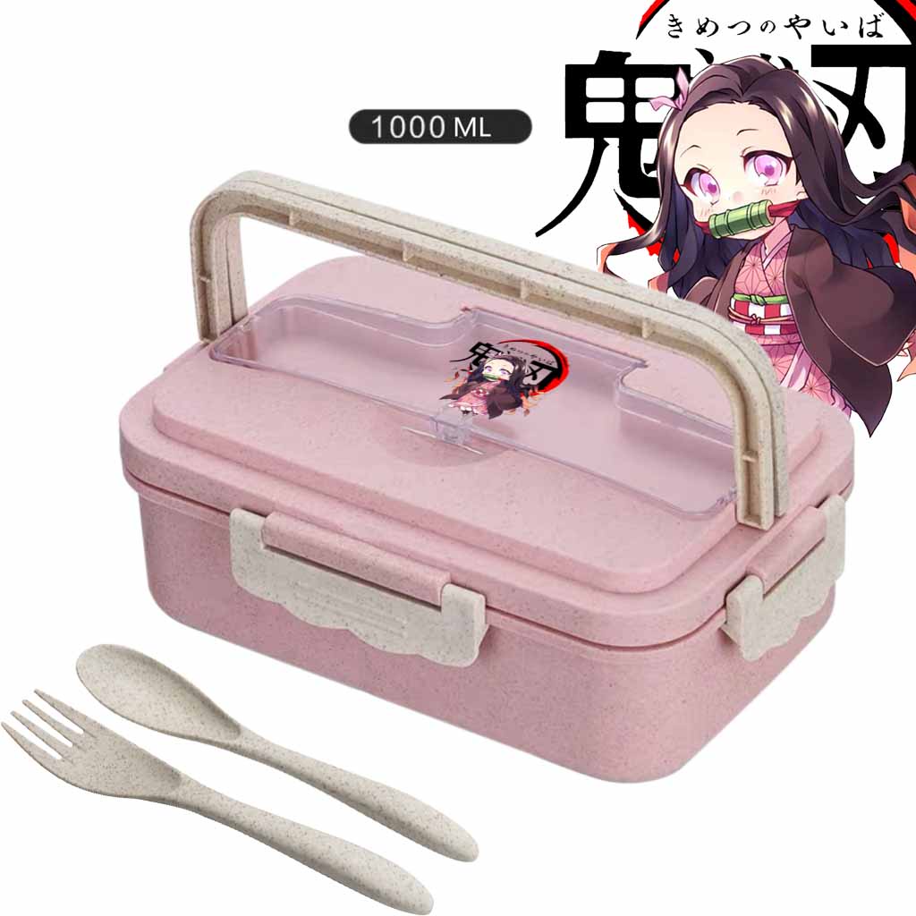 Anime Demon Slayer Lunch Box For Kids With Spoon Fork Portable Food Storage Container Bento Box