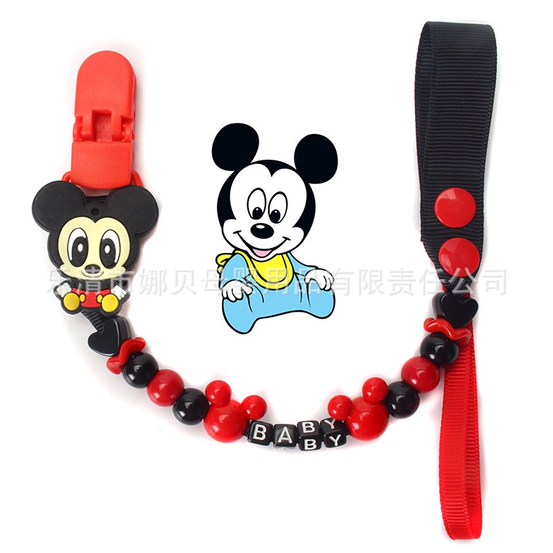Anime Disney Stitch Baby Silicone Pacifier Mickey Mouse Antidrop Chain Pacifier Hole Anti-lost Chain Belt Newborn Figures Toys