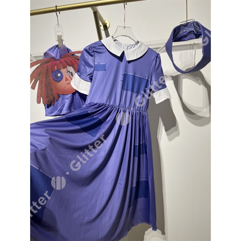 Anime Games The Amazing Digital Circus Cosplay Costume For Kids Girl Ragatha Purple Dress Mask Doll Plush For Adult Women Cartoon Party Children Clothes