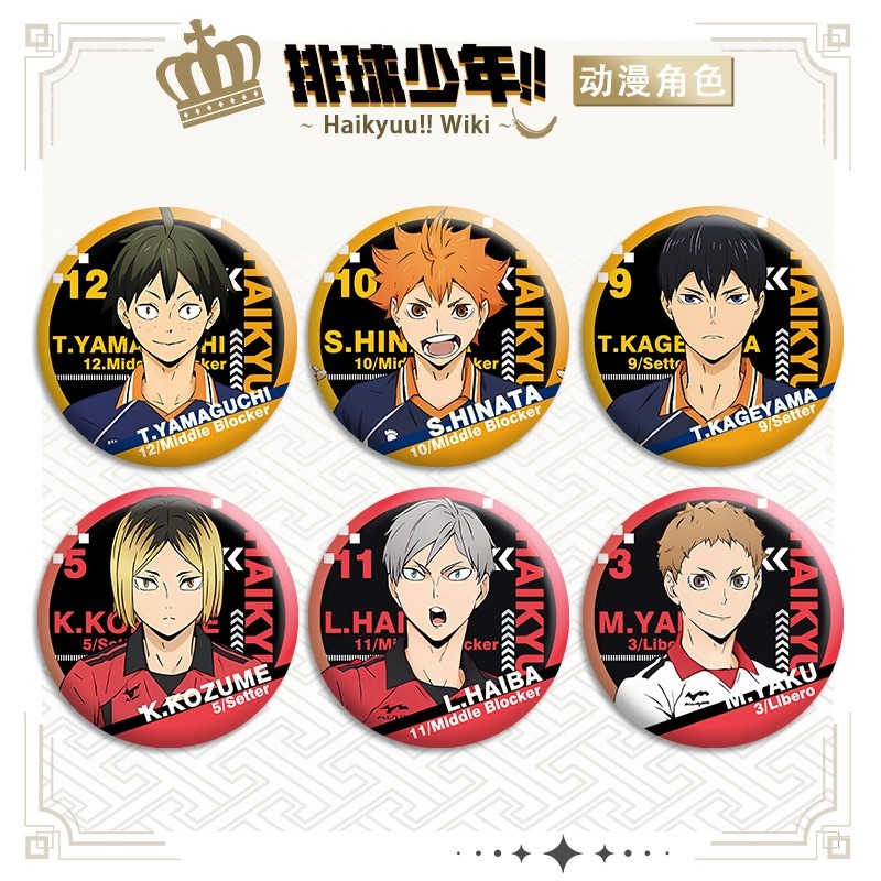 Anime Haikyuu!! Hinata kageyama Kozume Tendo Satori Ushijima Kenma Metal Badge Button Brooch Pins Cosplay Collection Toys Bag Decor Gifts