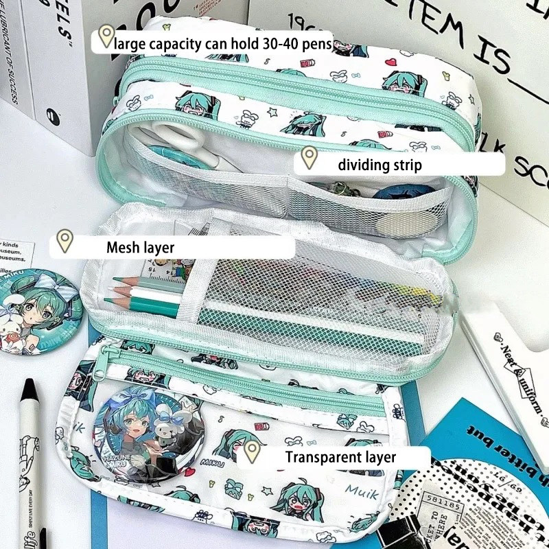 Anime Haikyuu!! Pencil Case Figure Hatsune Miku Capybara Large Capacity Student Stationery Storage Bag Pen Bag