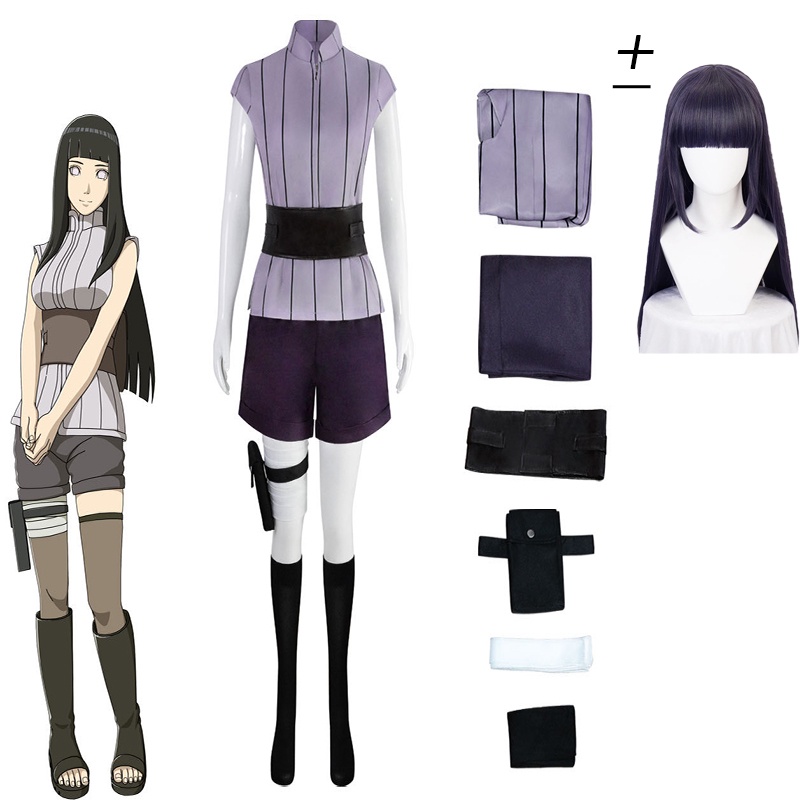 Anime Hyuga Hinata Cosplay Costume Wig for Adult Women Purple Top Shorts Bag Ninja Outfits Halloween Carnival Party Terno