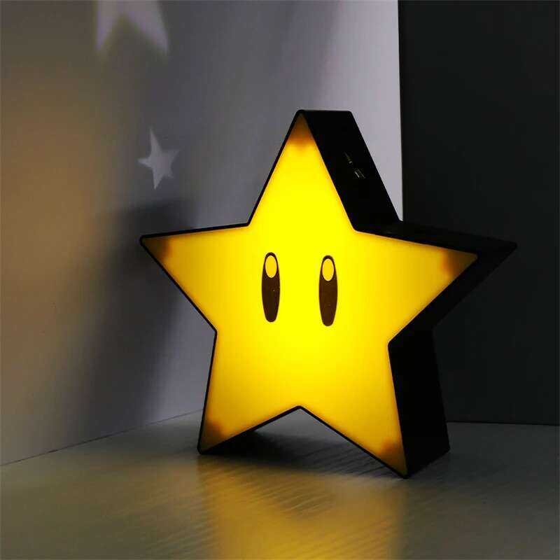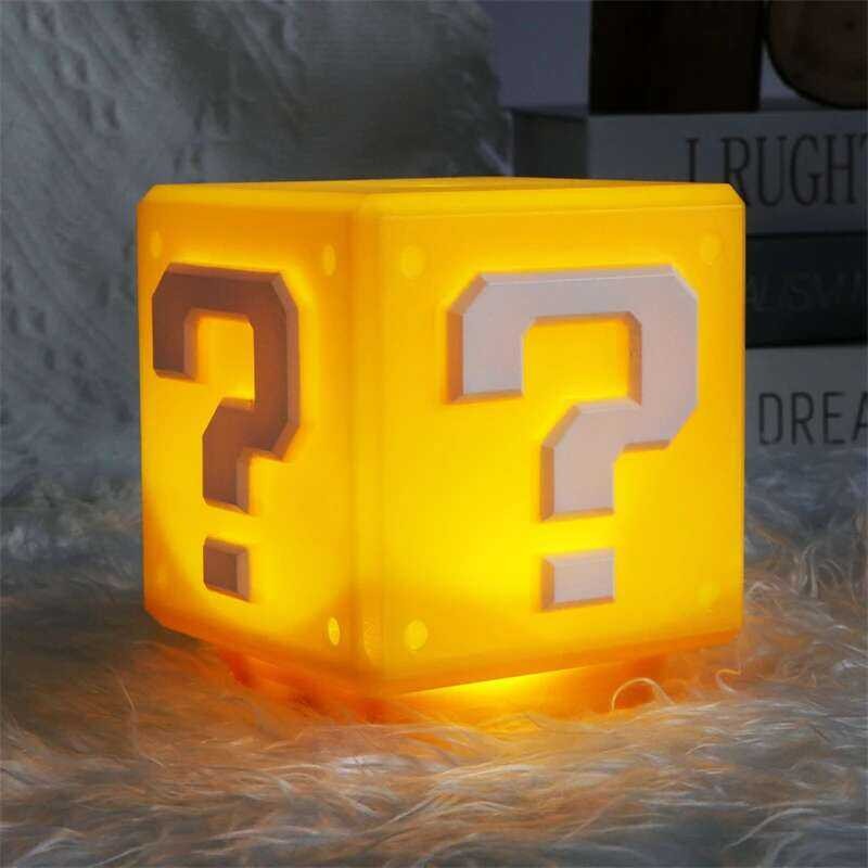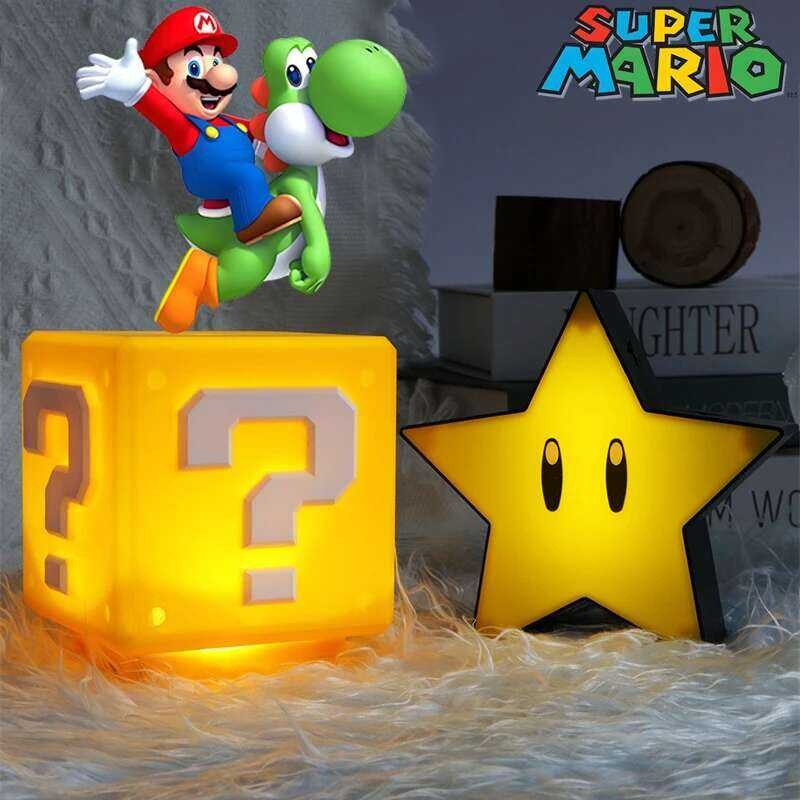 Anime Mario Bros Figure Toys Questions Mark Super Star Mushroom Koopa Troopa LED USB Charging Table