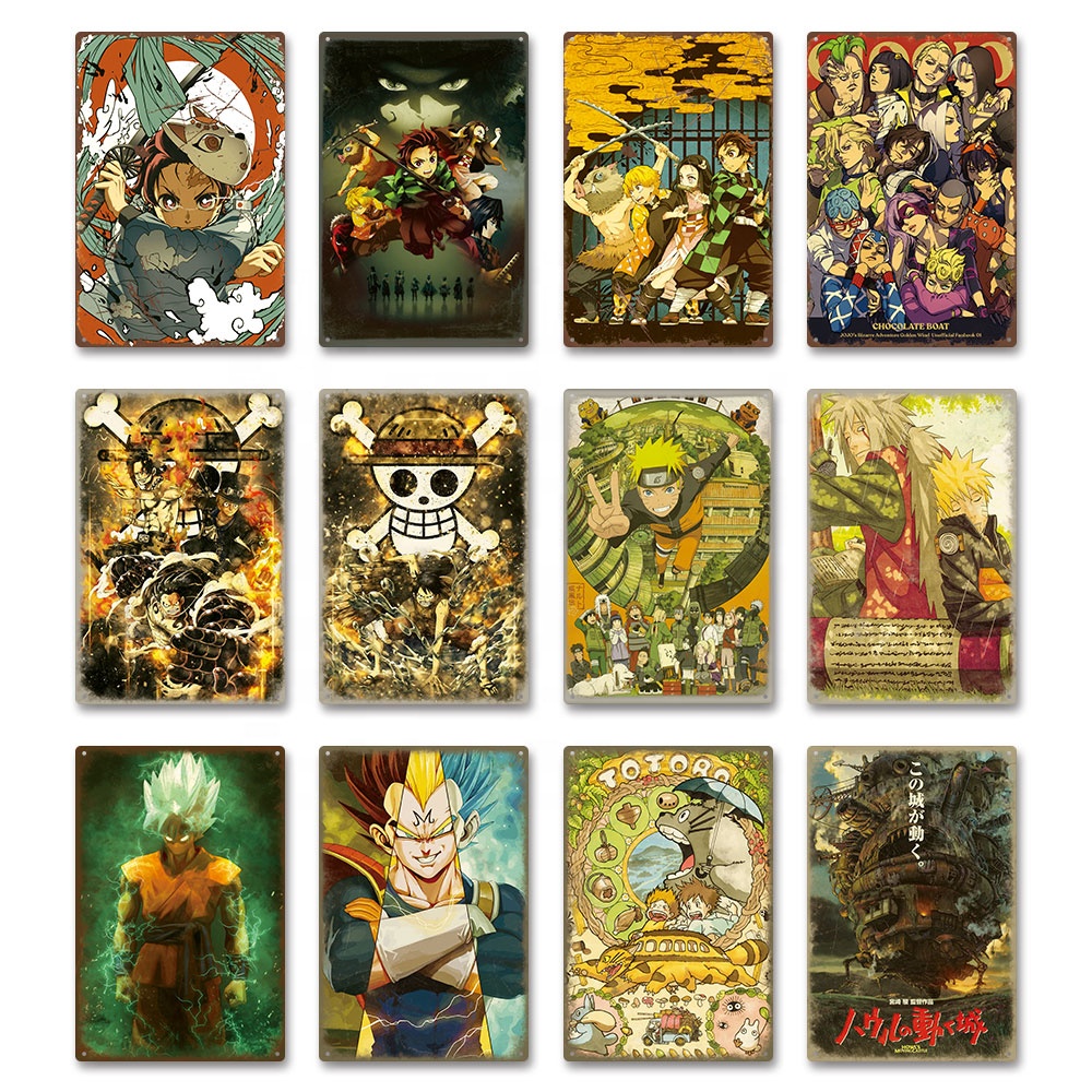 Anime Metal Tin Sign Poster Dragon Ball Naruto One Piece Manga Poster Metal Decoration Tin Sign