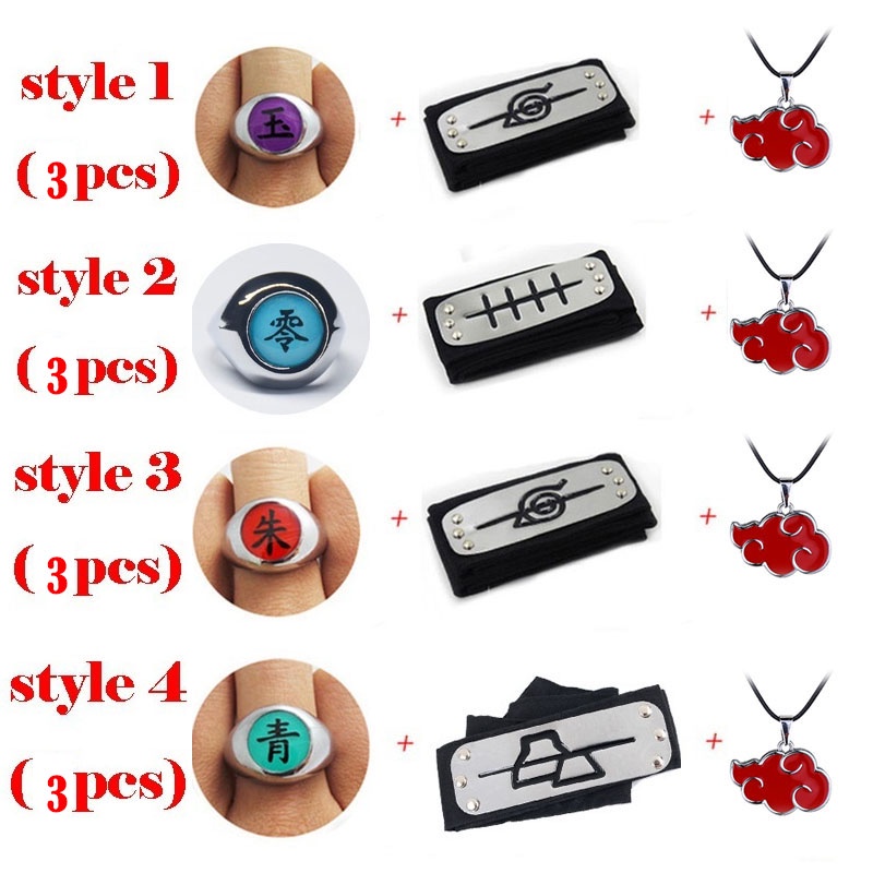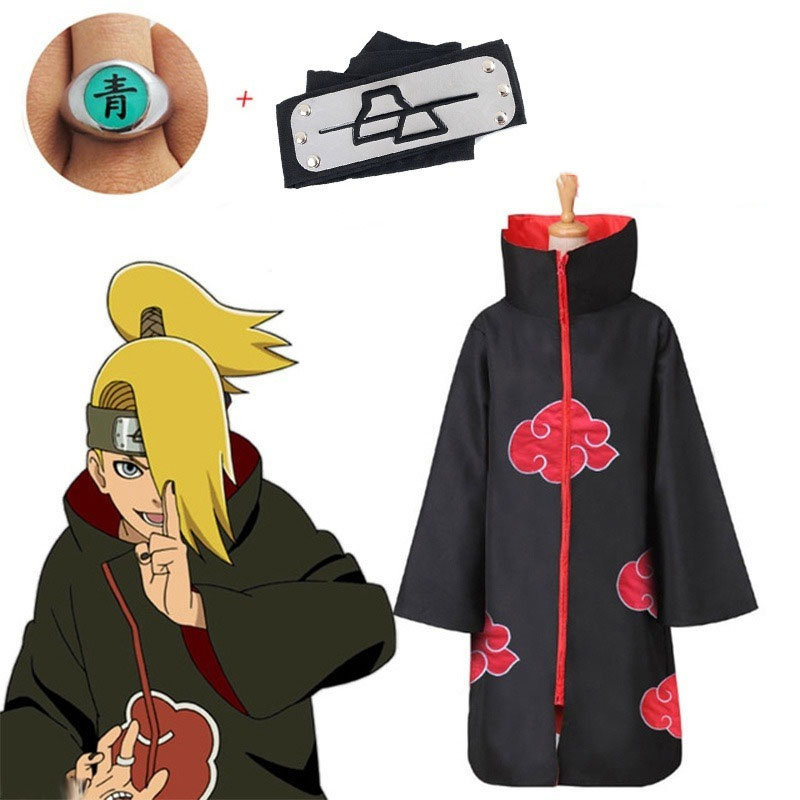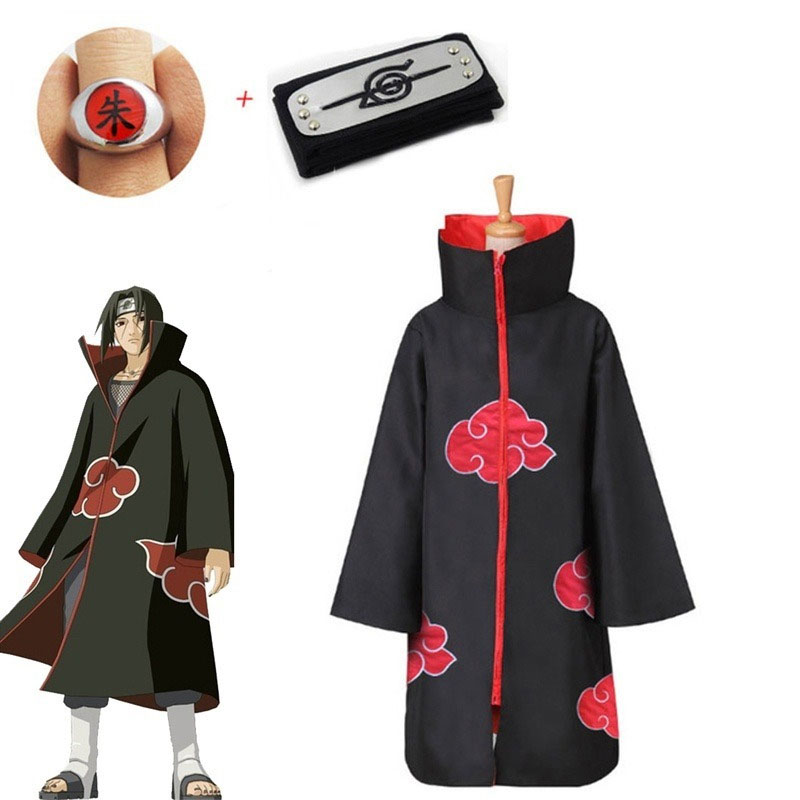 Anime Naruto Akatsuki Uchiha Itachi Deidara Pain Obito Costume Set Cosplay Cloak Cape Headband Ring for Halloween
