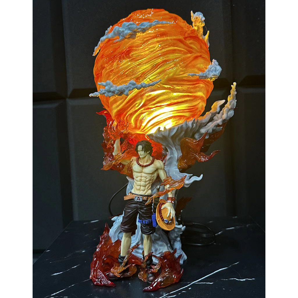 Anime One Piece Ace Figure Big Fireball Statue With Led Light