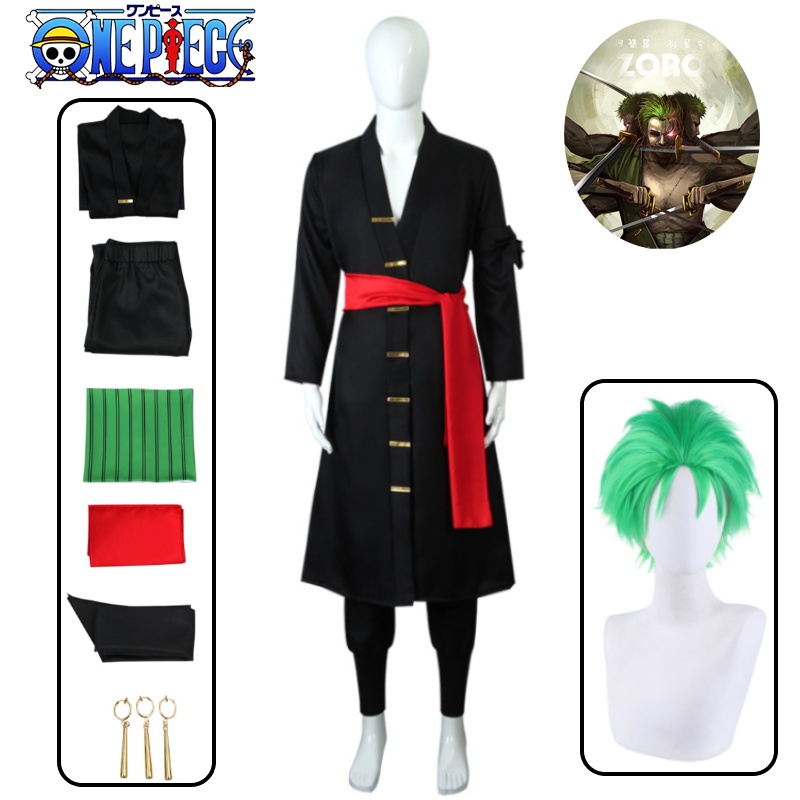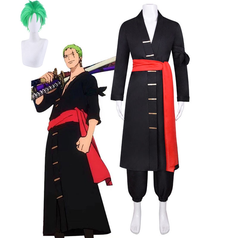 Anime One Piece Roronoa Zoro Cosplay Costume Kostuum Wig Outfits Uniform Kimono Halloween Carnaval Pak