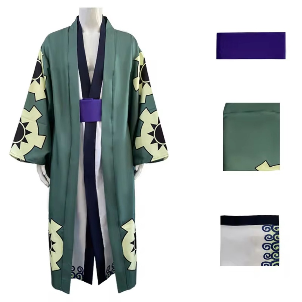Anime One Piece Roronoa Zoro Cosplay Costume One Piece Wano Kimono Robe Cloak Belt Full Suit Outfit For Woman Men Costume Cloak