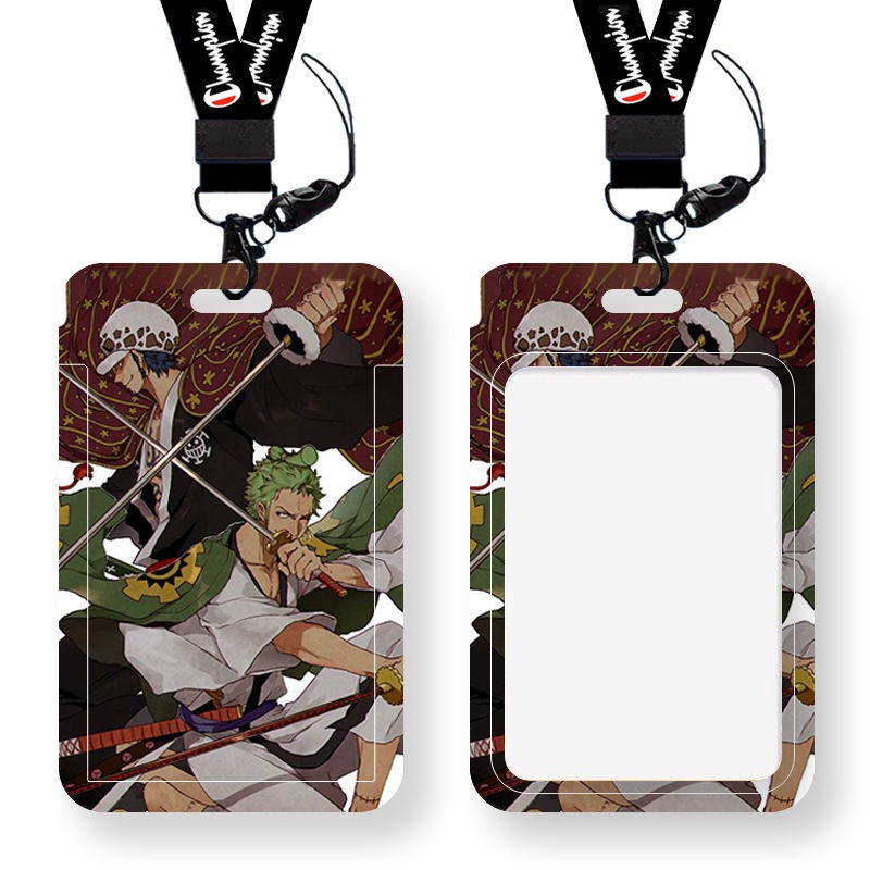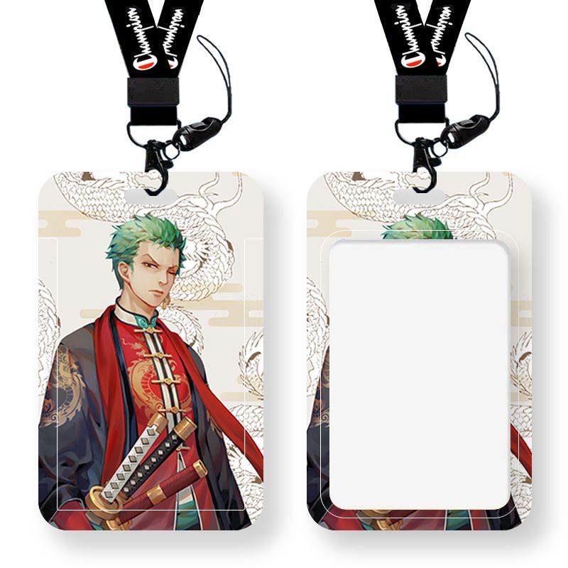Anime One piece Zoro Card Holder With Neck Lanyard ID Badge Name Tag Protector Case For Student and kids
