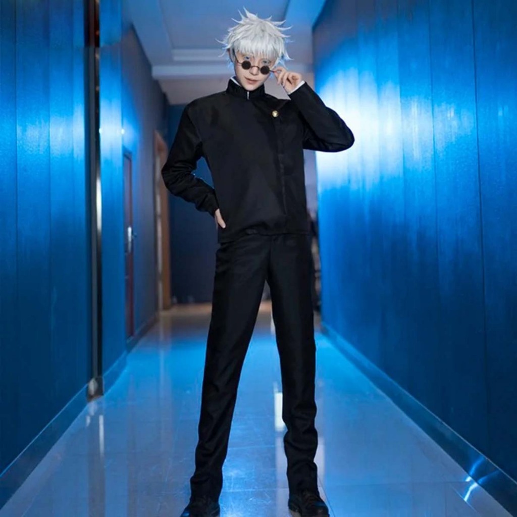 Anime S2 Gojo Satoru Cosplay Costume Dark Blue High School Uniform Role play Suit Halloween Party Comic con Full Set For Men Adult