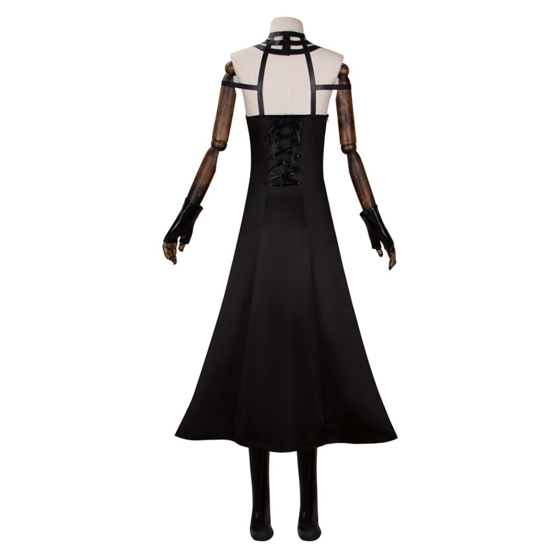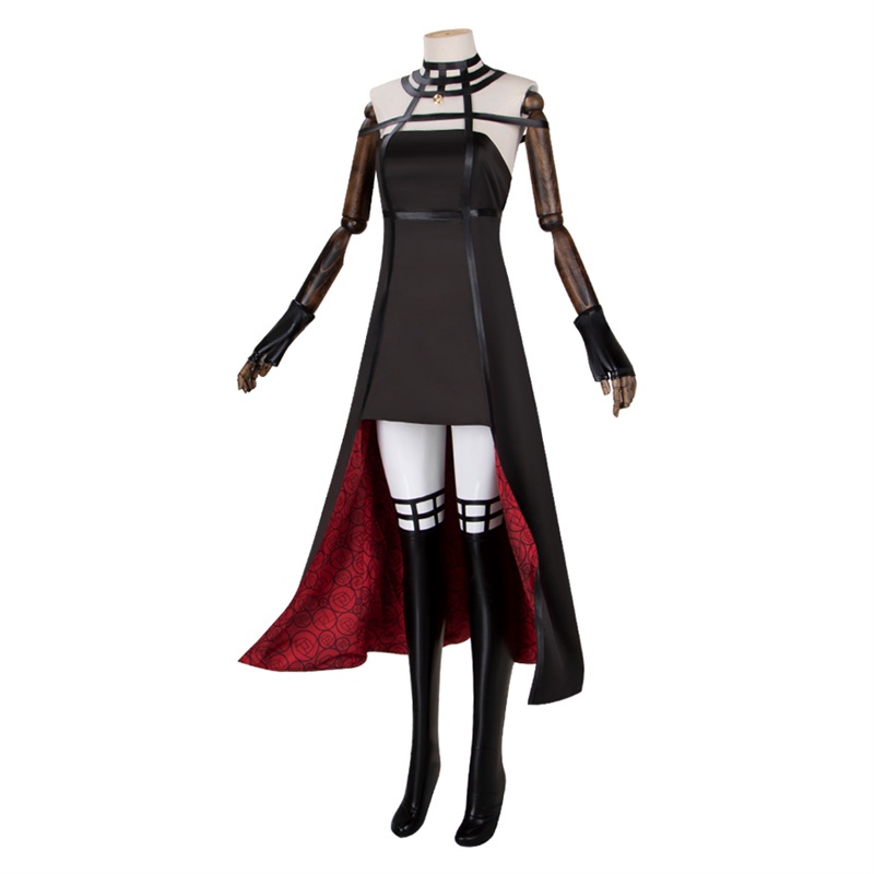 Anime Spy Family Yor Forger Cosplay Killer Assassin Gothic Halter Black Dress Outfit Cosplay Costume with Leather Stockings