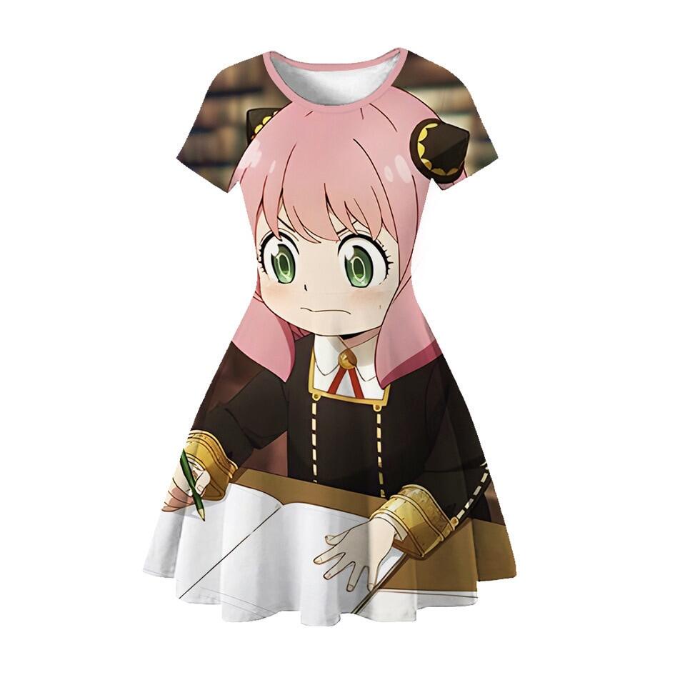 Anime Spy X Family Dress Cosplay Costume Anya Forger Kids Girls Princess Skirt Halloween Party Outfit Gift Set