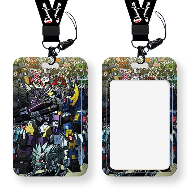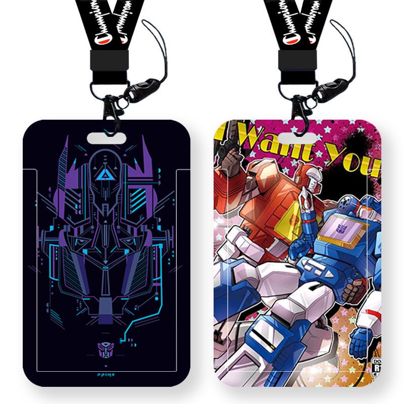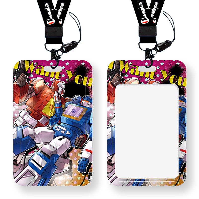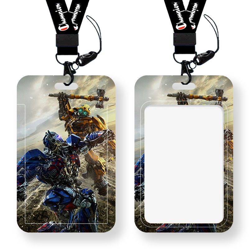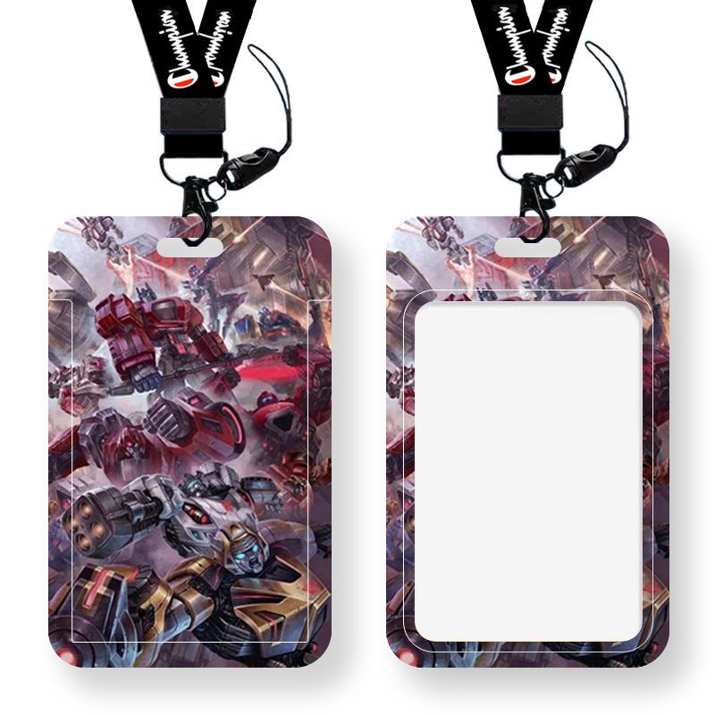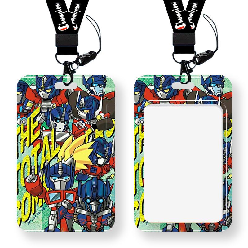 Anime Transformers Card Holder Bus Card Campus Card Student Worker Credit Card Waterproof ID Holder Long Lanyard ABS Hard Shell Slider