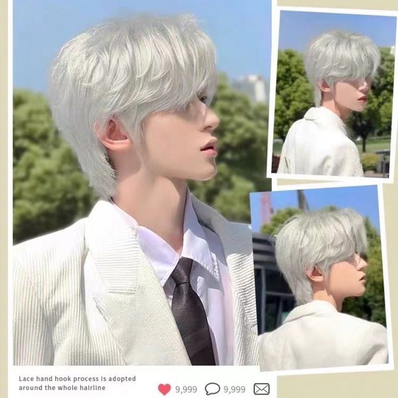 Anime White Wig Men Wig Short Synthetic Straight Hair Heat Resistant Wig for Cosplay Party Wig