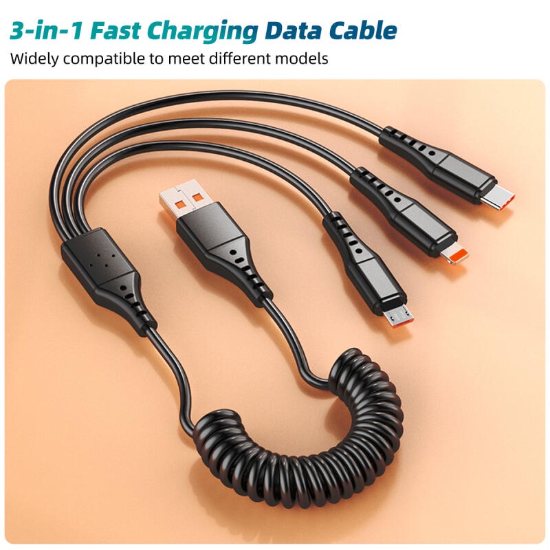 Ankndo 3-in-1 Retractable Data Cable USB Spring Retractable Cable For Type-C Android Phone High Quality Copper Fast Charging Wire